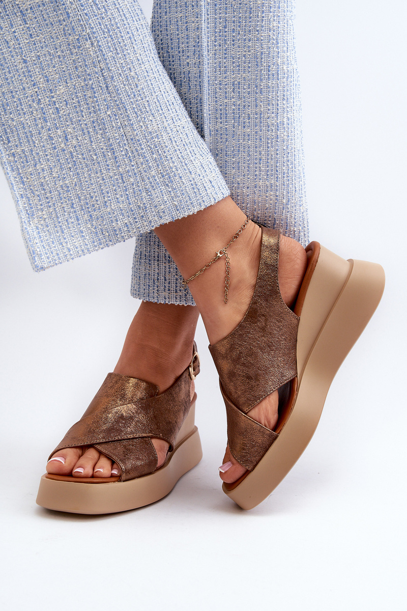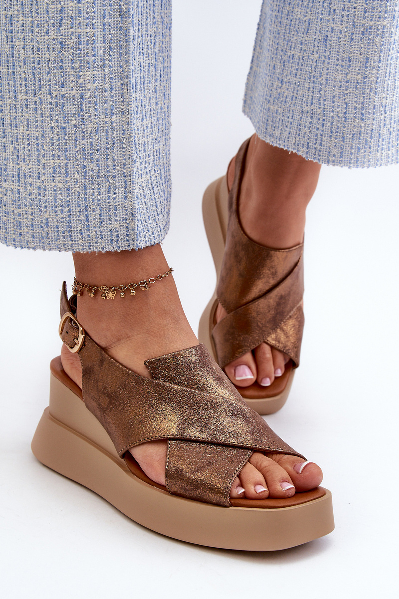 Women's sandals made of eco leather on platform and wedge copper Vaiara