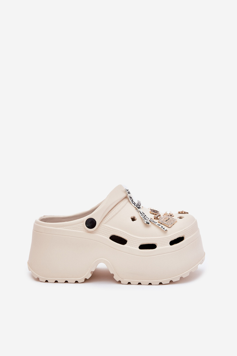 Women's sandals on a chunky platform with embellishments beige Vivira