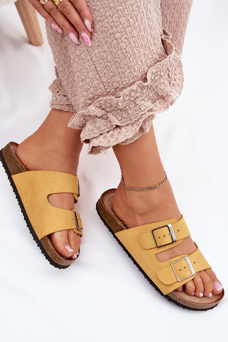 Women's Sandals On Cork Platform With Buckle Yellow Evisolla