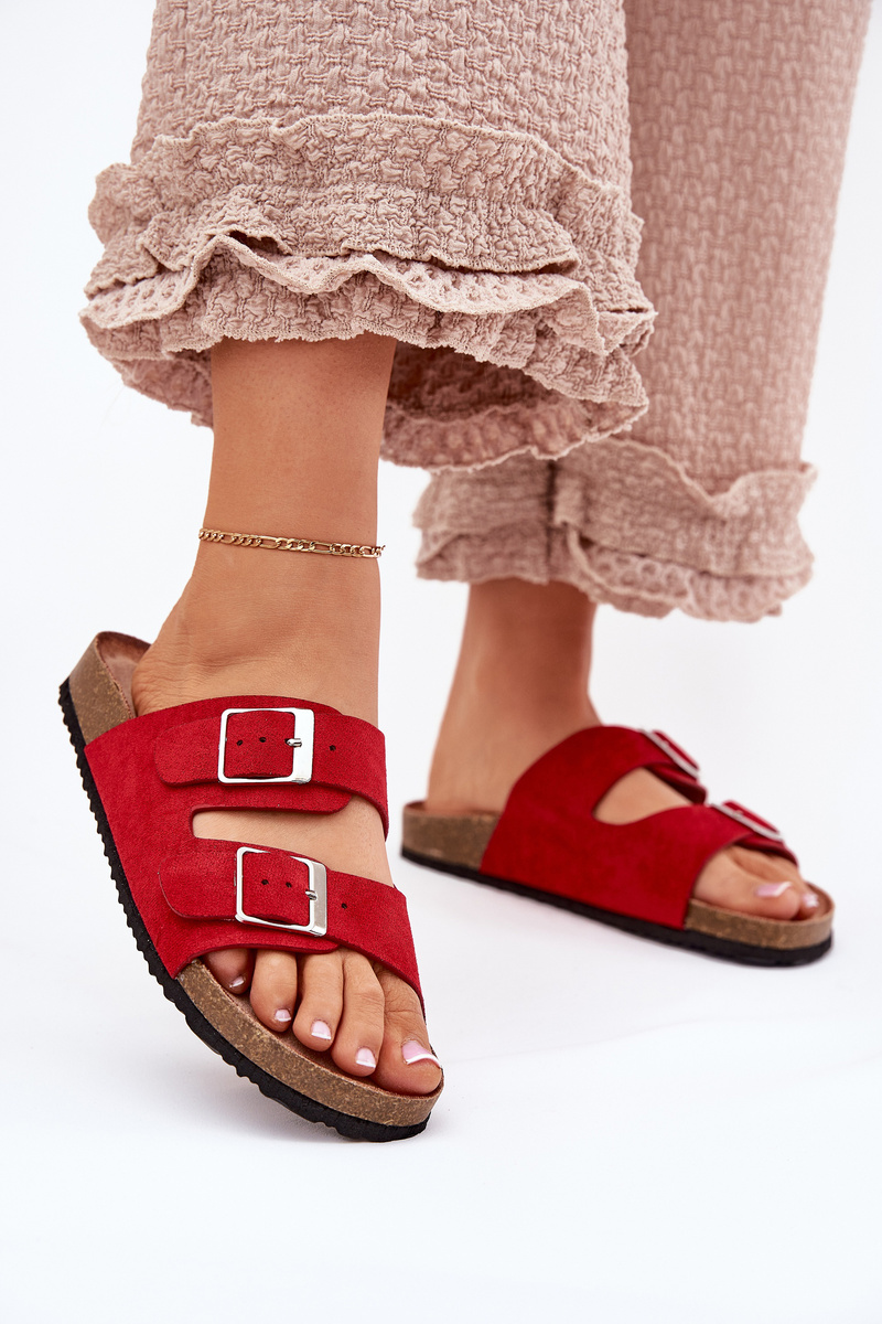 Women's eco-suede slippers are a combination of style and comfort for everyday wear. Equipped with two adjustable straps with buckles that allow for a perfect fit to the foot. The contoured insole provides comfort, while the cork platform adds lightness and stability. Perfect for everyday styling, combining functionality with a fashionable look. When choosing a size, please refer to the size chart.