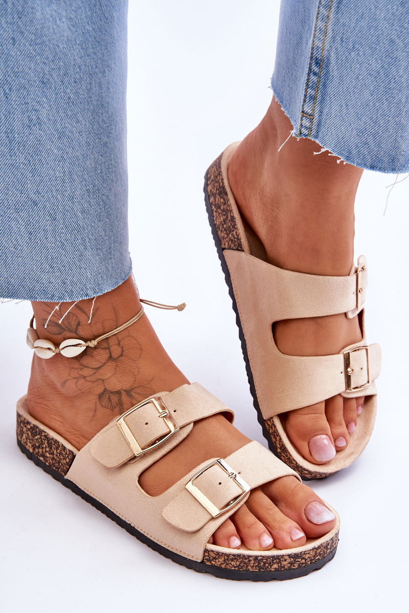 Women's slippers are made of pleasant to the touch eco suede. They have decorative buckles with adjustable straps. This model was mounted on a cork platform. Perfect footwear for the summer season. These flip-flops have a profiled, comfortable insole. You absolutely should have them! When choosing a size, please refer to the size chart.