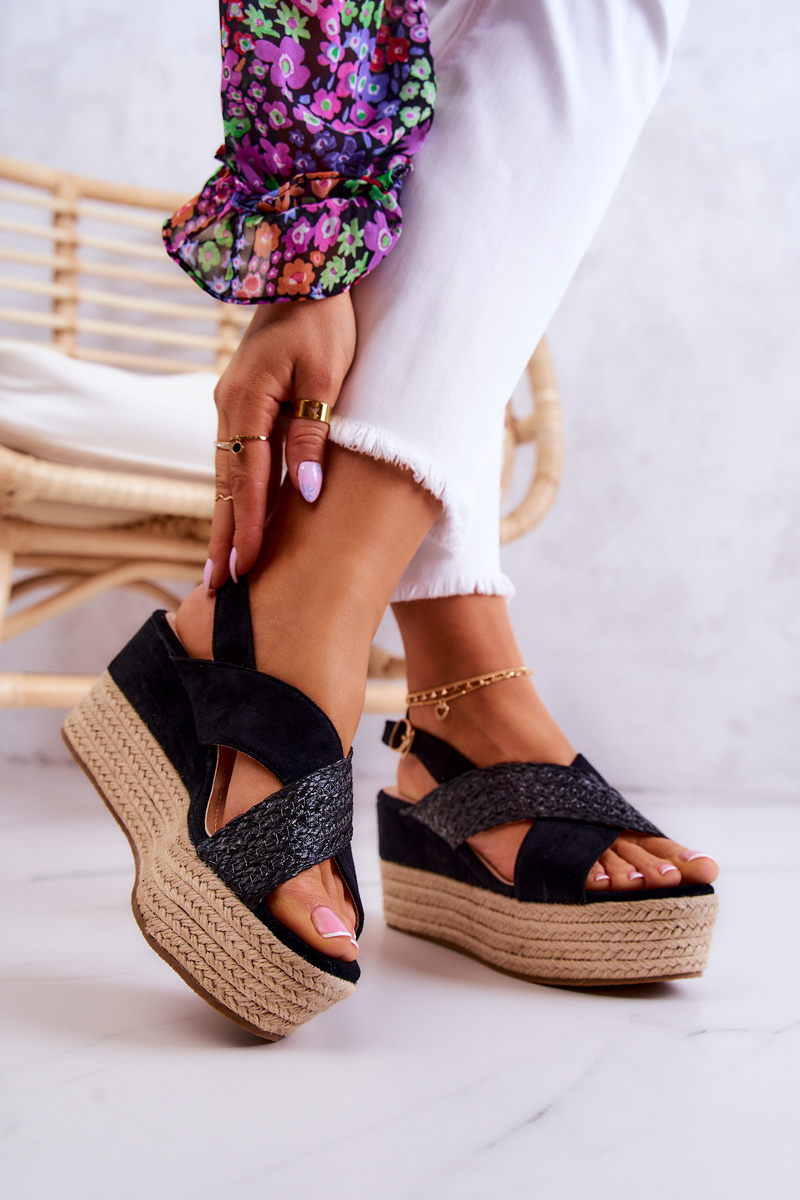 Sandals on a high platform decorated with linen braid and eco suede leather. Fastened with an adjustable belt with a buckle. Two crossed straps stabilizing the foot made of suede eco leather and plastic. The shoes go well with long dresses. A soft, eco-leather insole will allow you to use the sandals all day long. Perfect for work, meeting friends or a weekend trip. When choosing a size, please use the size chart.