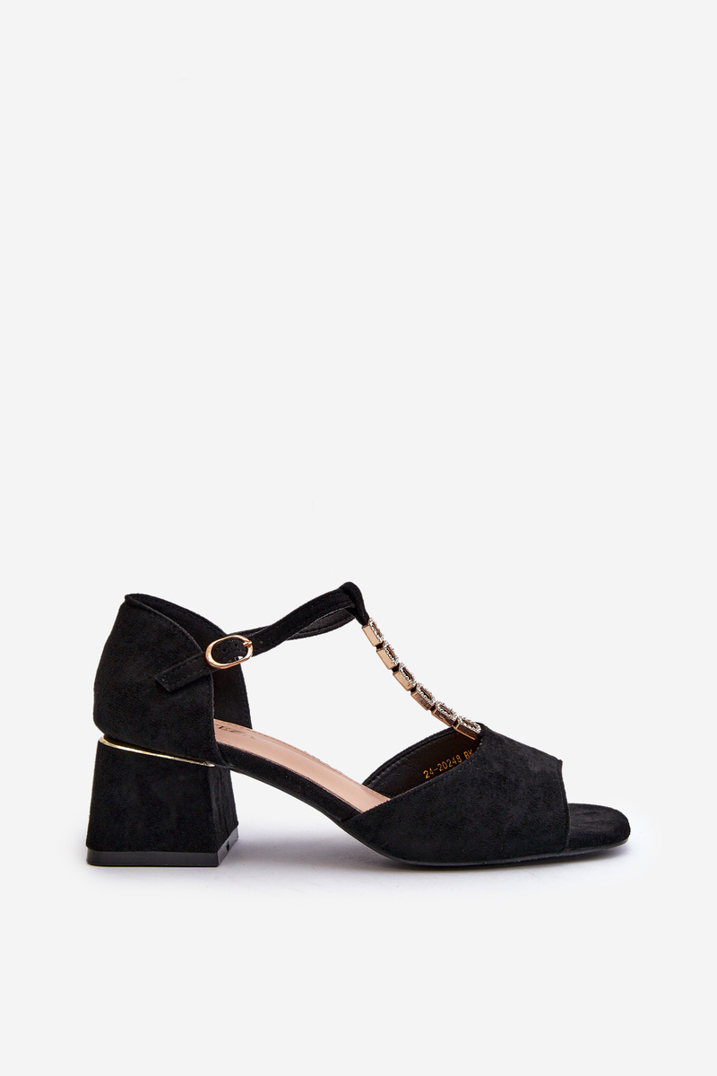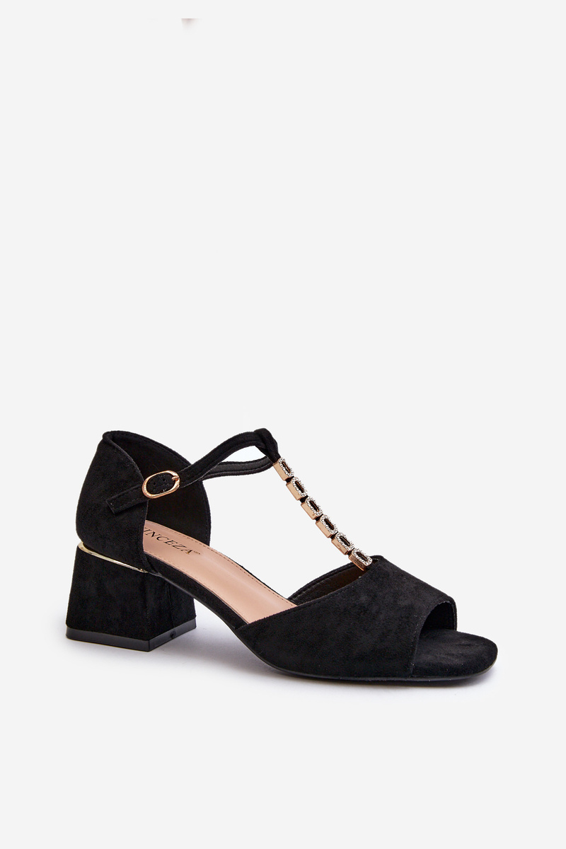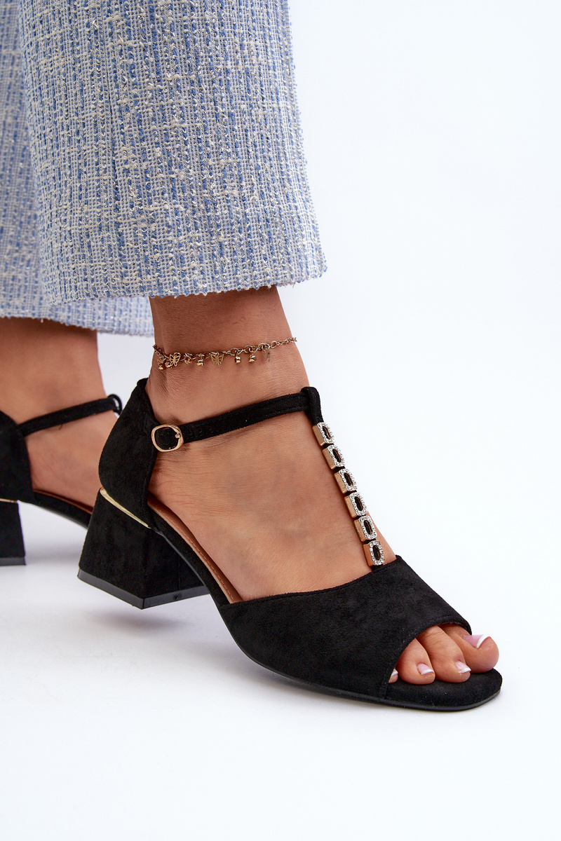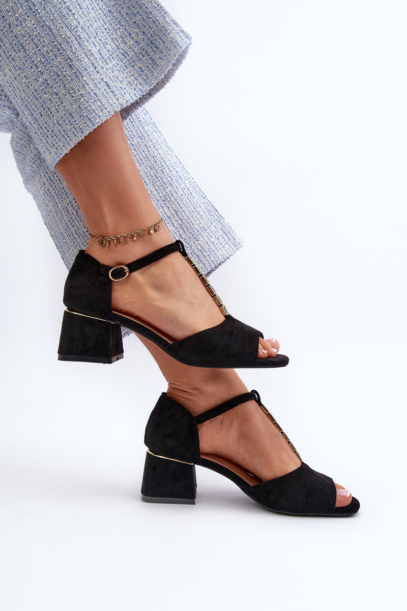 Women's sandals with block heel and decorative strap eco suede black Obivena