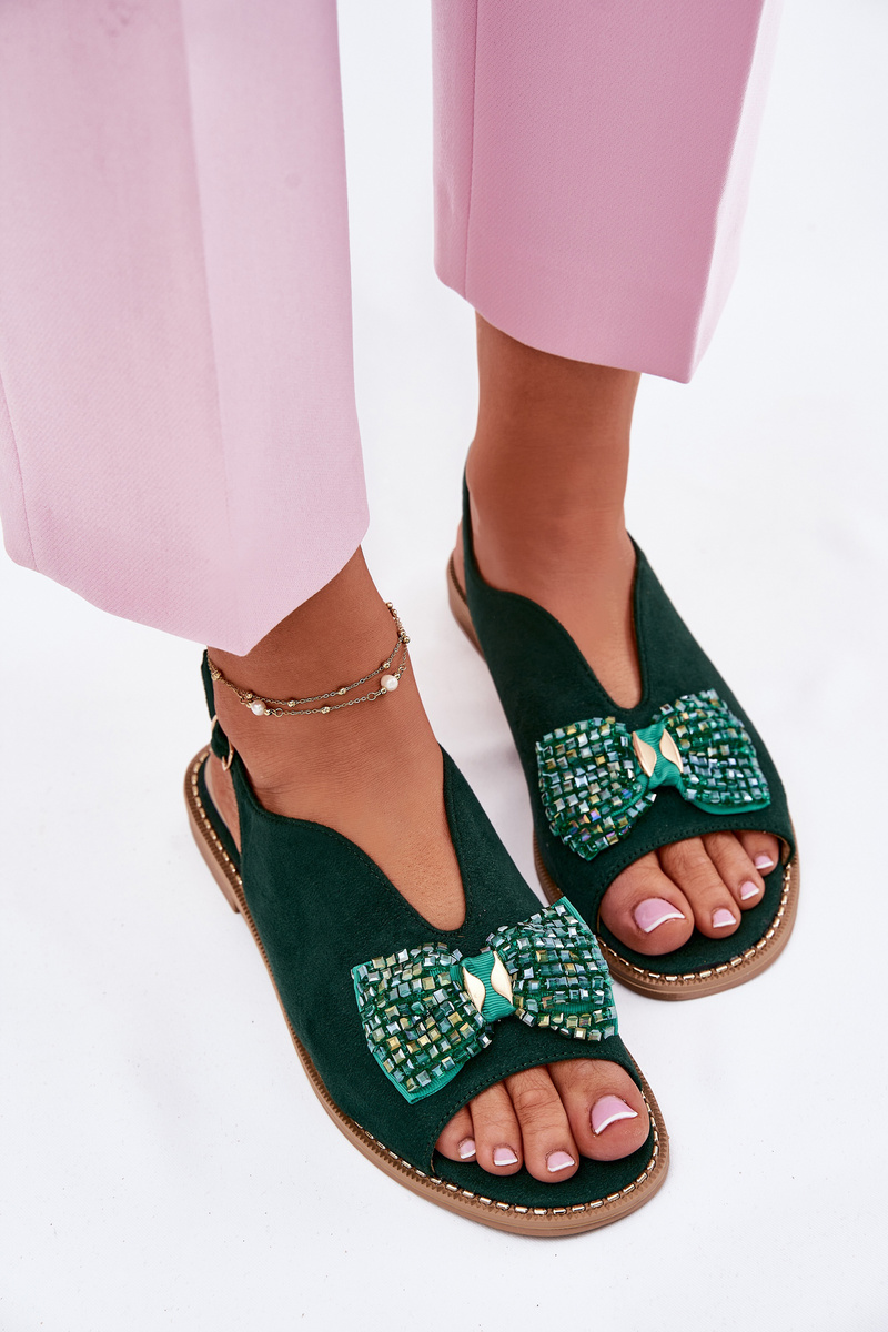 Womens Sandals With Bow On Flat Heel S.Barski KV51-014 Green