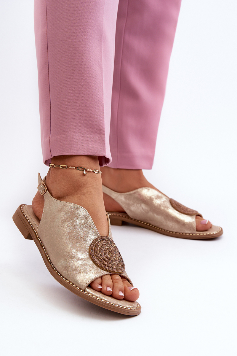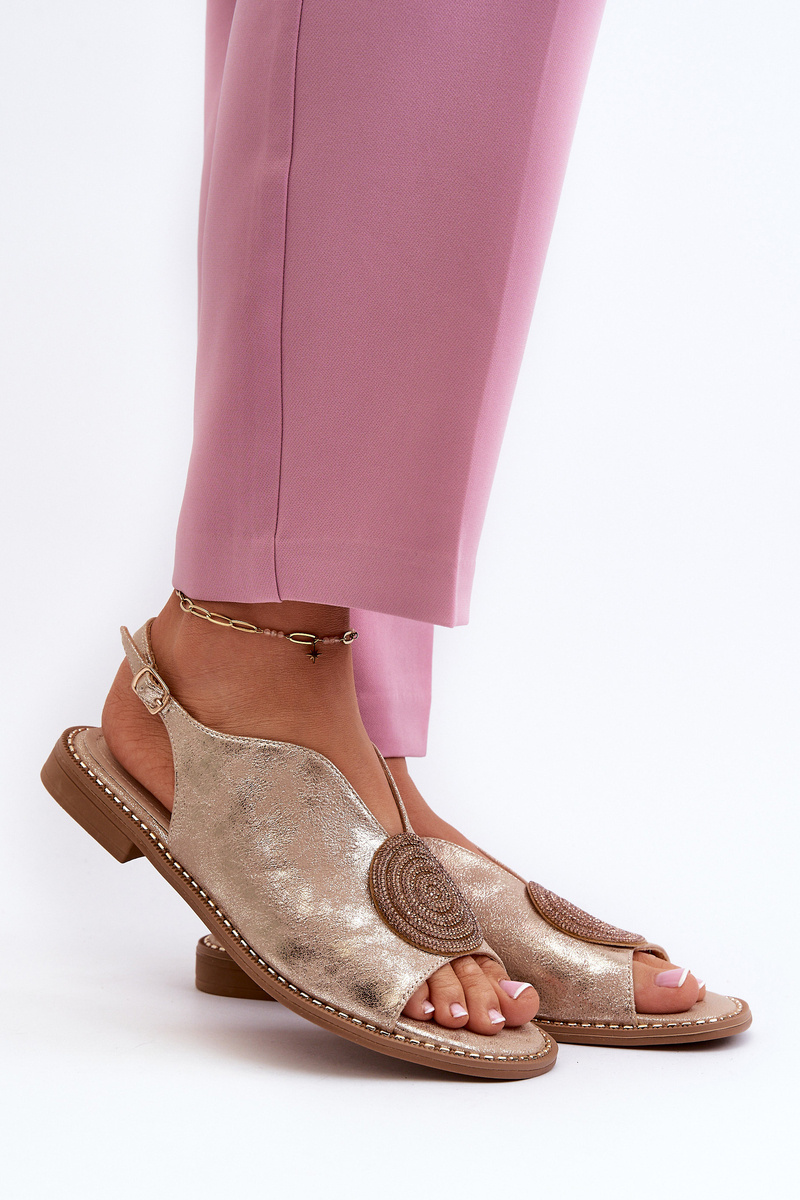 Women's sandals with ornament on flat heel S.Barski KV24-057 Golden