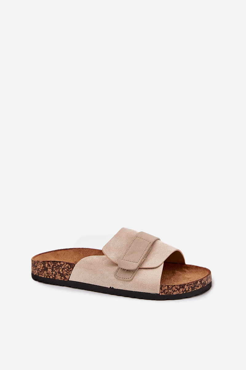 Women’s slippers made of eco suede, set on a cork platform, are an excellent choice for warm days. Thanks to the contoured insole, they provide comfort all day long. The strap with Velcro allows easy adjustment to the foot, and the cork platform adds lightness and a stylish character. Ideal for everyday styling. When choosing a size, please refer to the size chart.