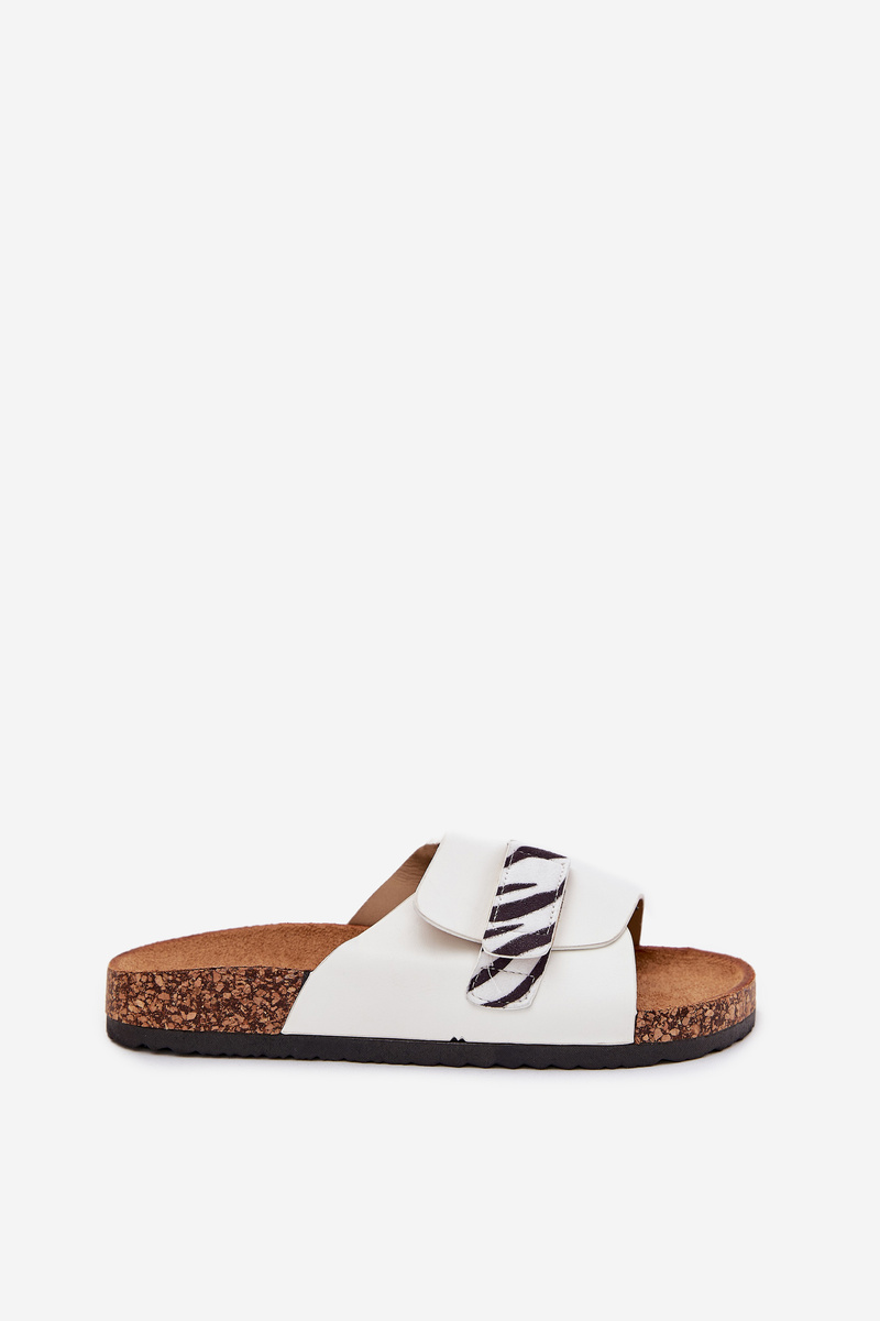 Women's slippers made of eco-leather, set on a cork platform, are an excellent choice for warm days. Thanks to the contoured insole, they provide comfort all day long. The strap with hook-and-loop fastener allows for easy adjustment to the foot, and the cork platform adds lightness and a stylish character. Ideal for everyday outfits. When choosing a size, please refer to the size chart.