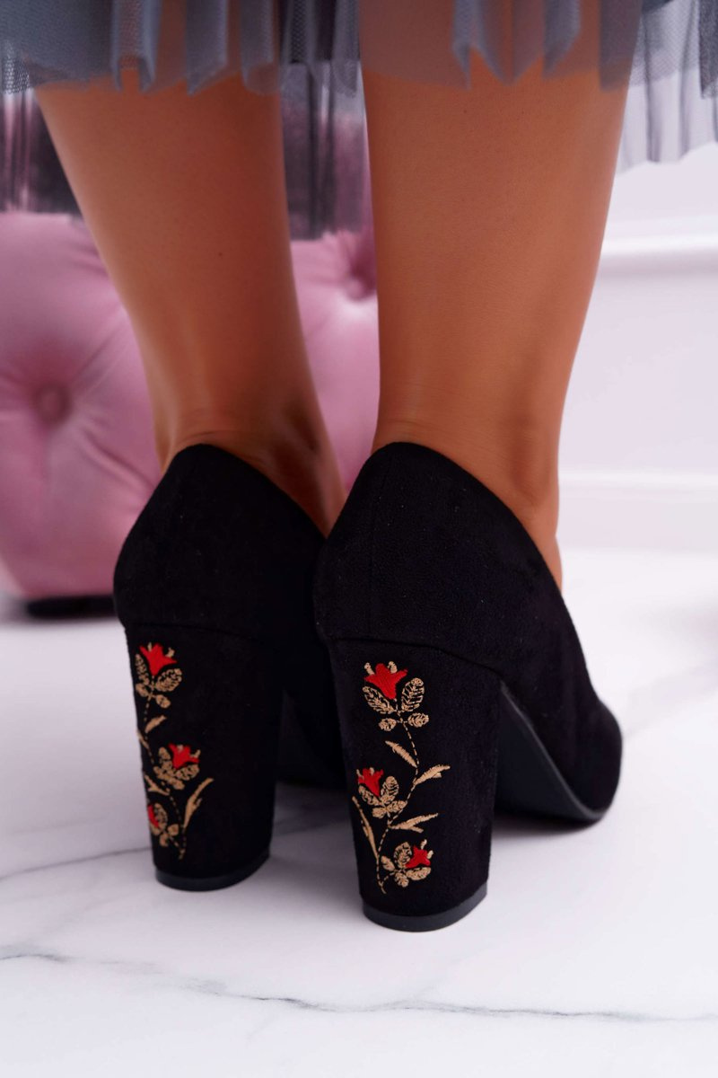 Classic pumps from Sergio Leone, now in a suede version! Perfect for elegant occasions! Cut with an almond-shaped nose! Model based on a stable, medium-height post. Insole made of natural leather will provide velvety lightness and comfort for your foot! They look beautiful on the leg thanks to the floral pattern on the post! You must have them in your collection! Buy now at a great price!