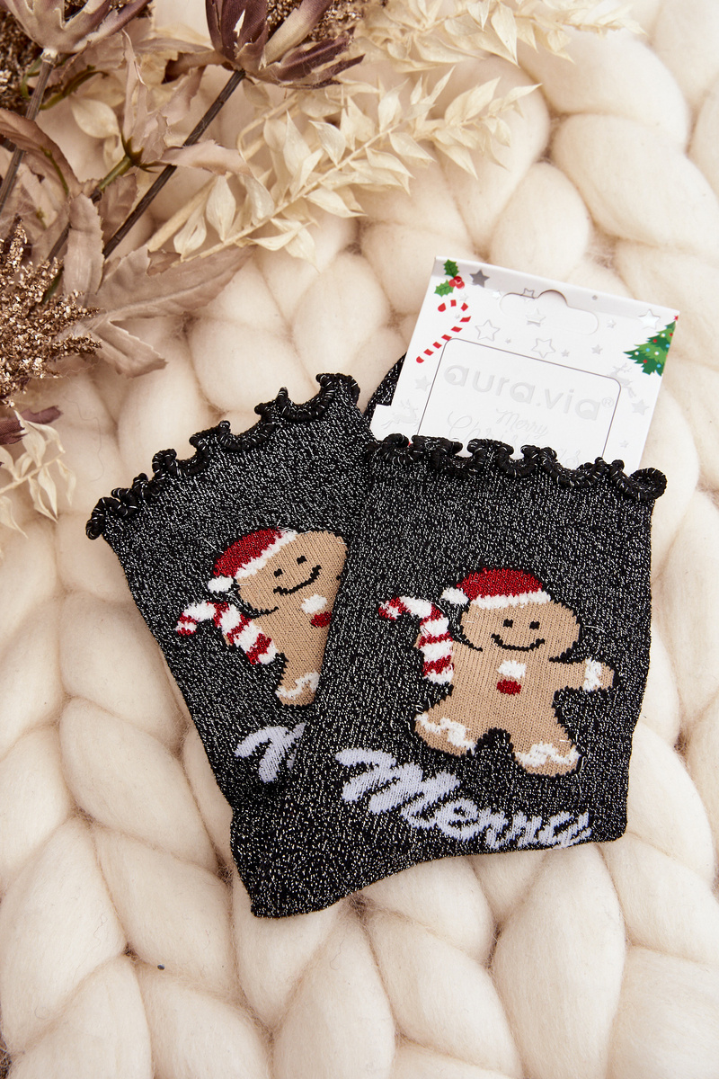 Women's Shiny Christmas Socks Black