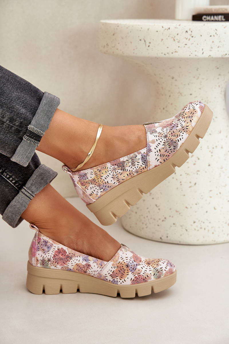 Women's loafers from the brand Jezzi are an elegant and comfortable option for everyday wear. Made from eco-leather. Set on a wedge, they provide stability and lightness with every step. The rounded toes give them a subtle character, and the perforated pattern on the upper adds a fashionable, light accent. The leather insole guarantees comfort throughout the day. These loafers will be an excellent complement to both casual and more elegant styles. When choosing a size, please refer to the size chart.