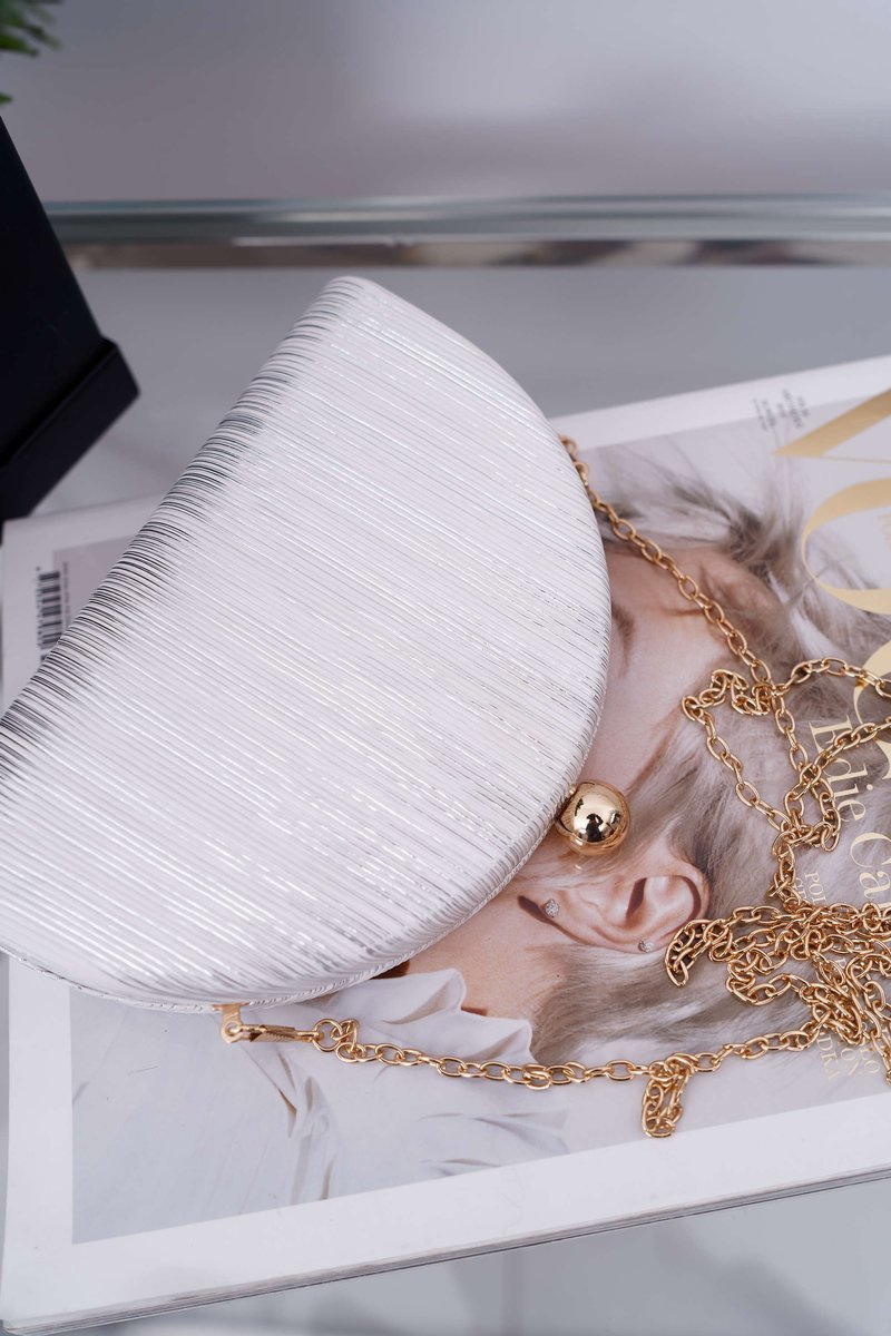 A stylish clutch bag that will be perfect for evening outings and special events. The snap-closure model is equipped with a practical detachable chain for convenient use.