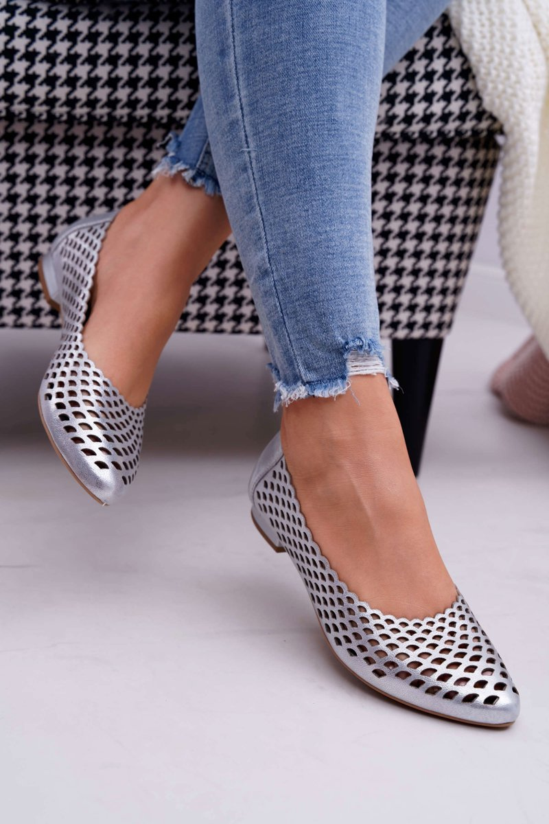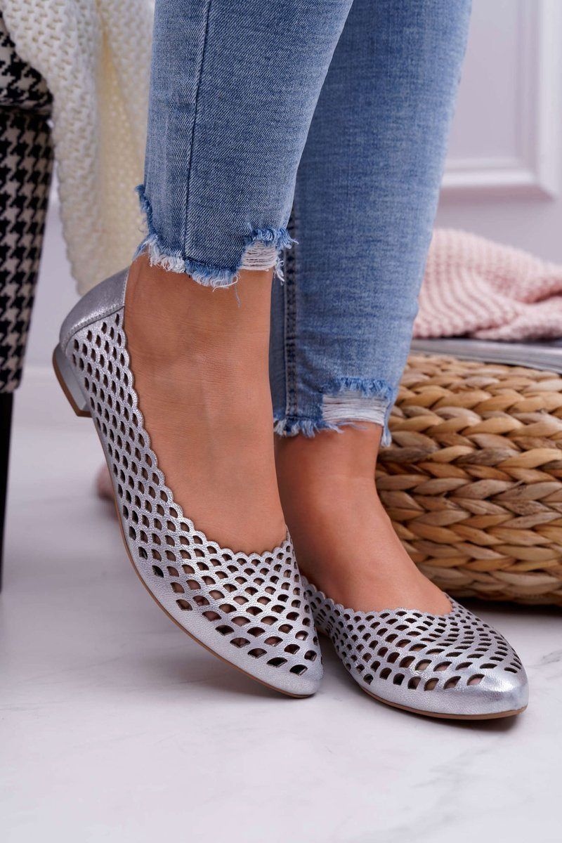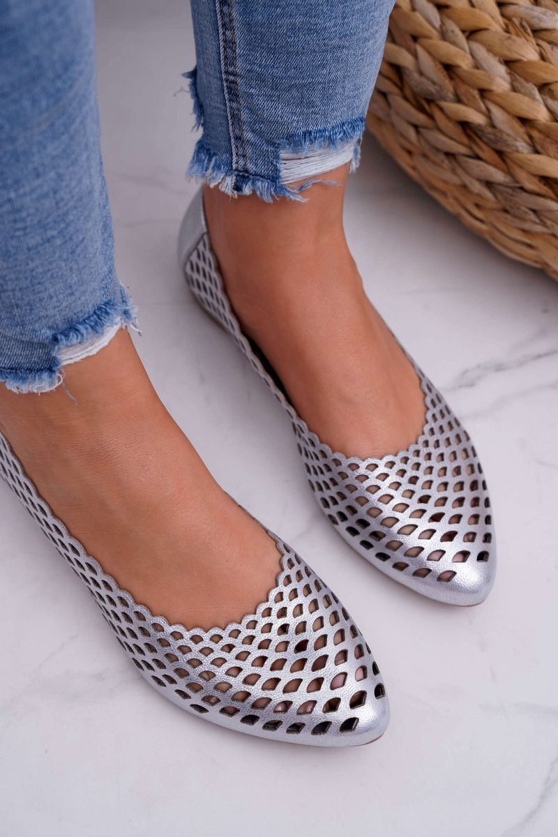 Women's Silver Leather Ballerinas Exquisite 1107/1