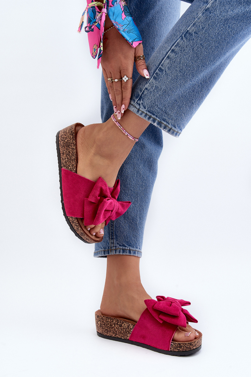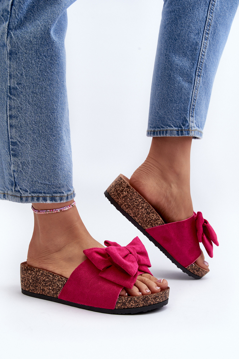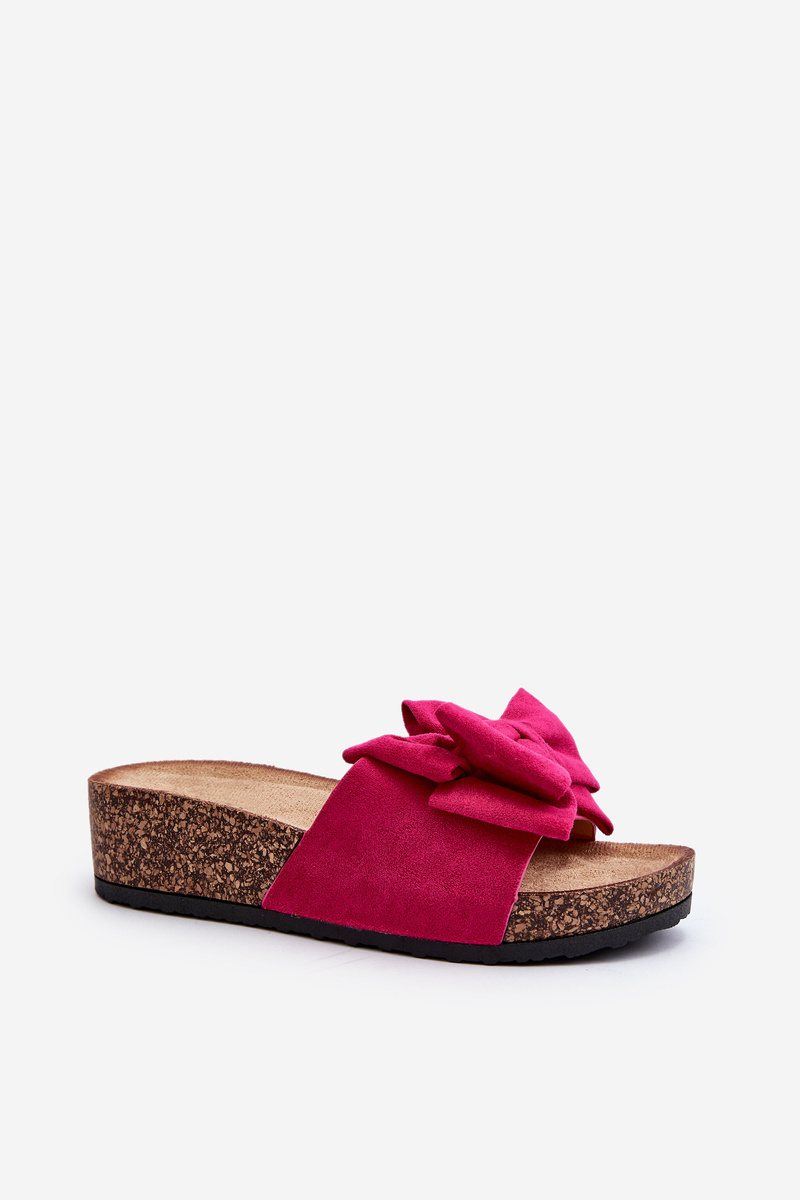 Women's Slides on Chunky Cork Platform with Bow Pink Tarena