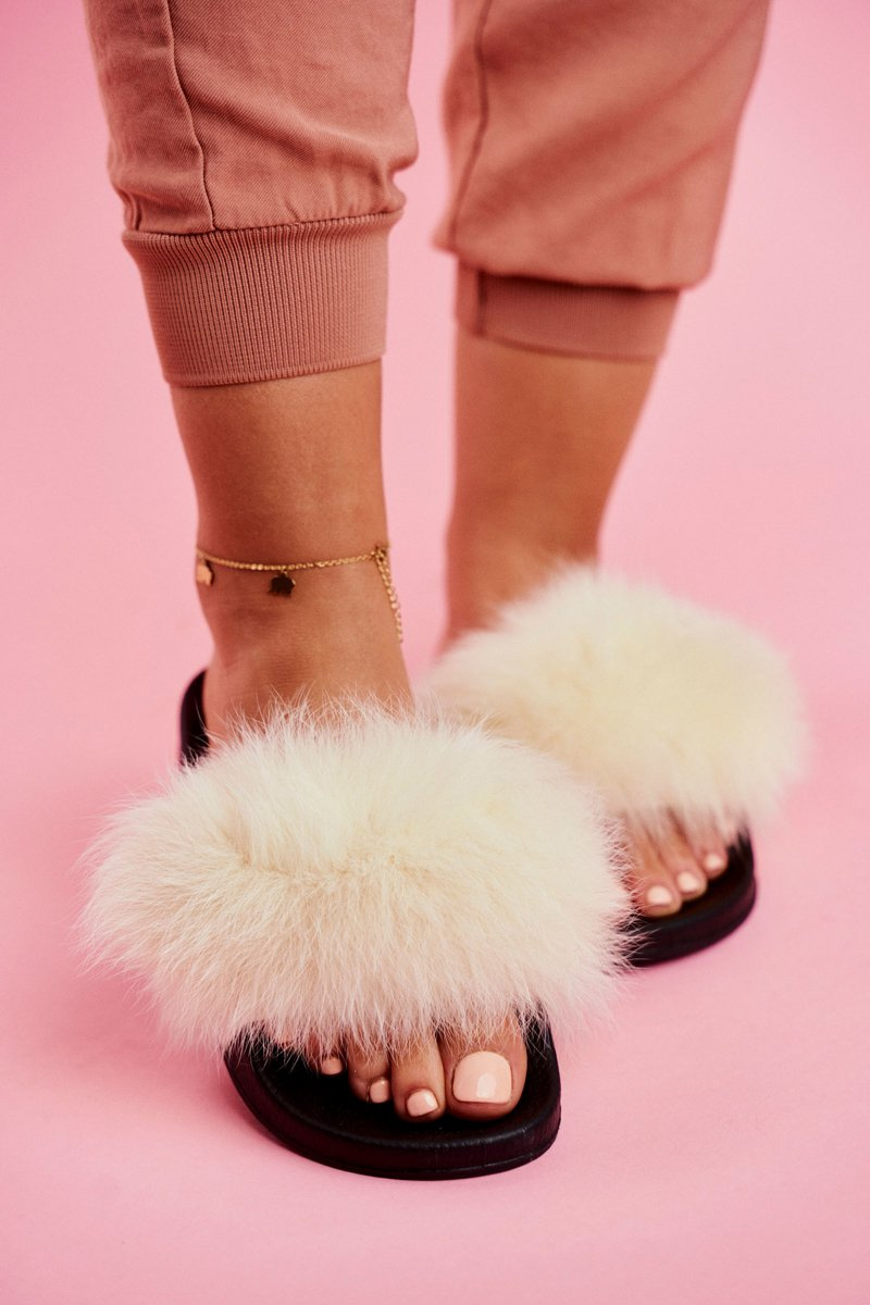 Women's Slides With Fur White Belmondo