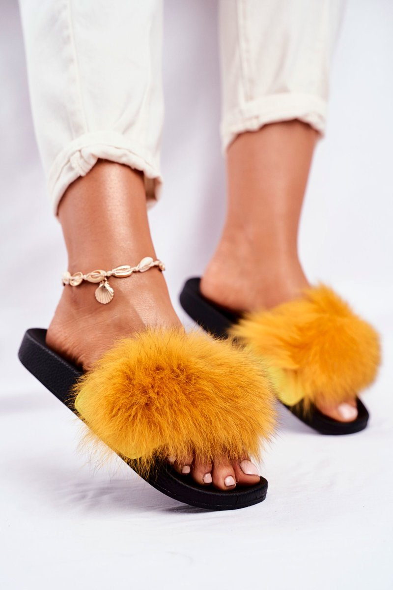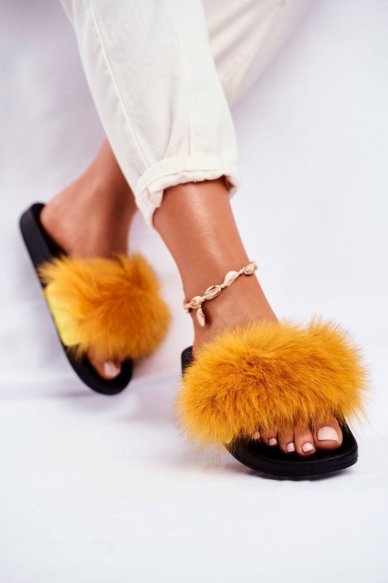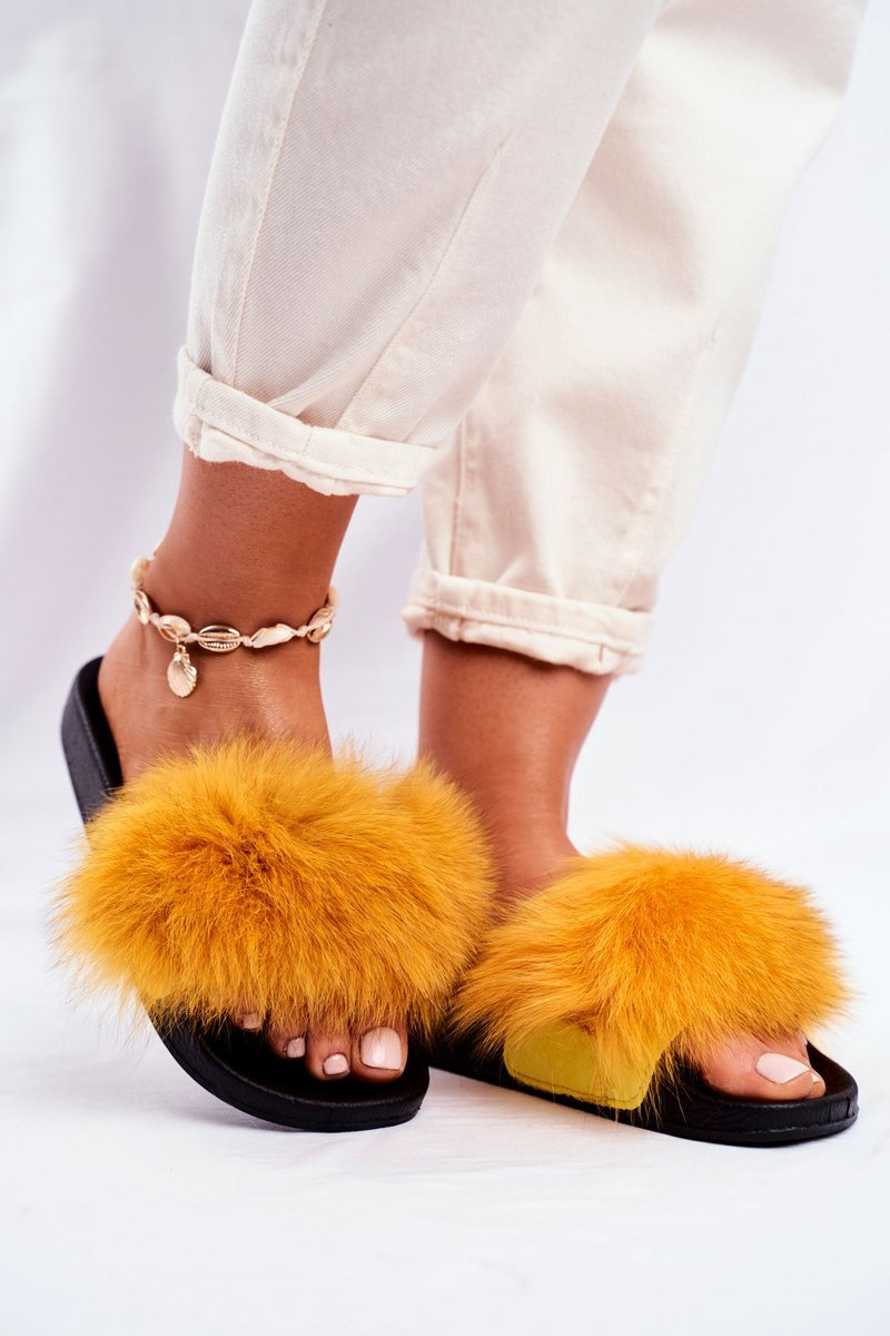 Women's Slides With Fur Yellow Belmondo