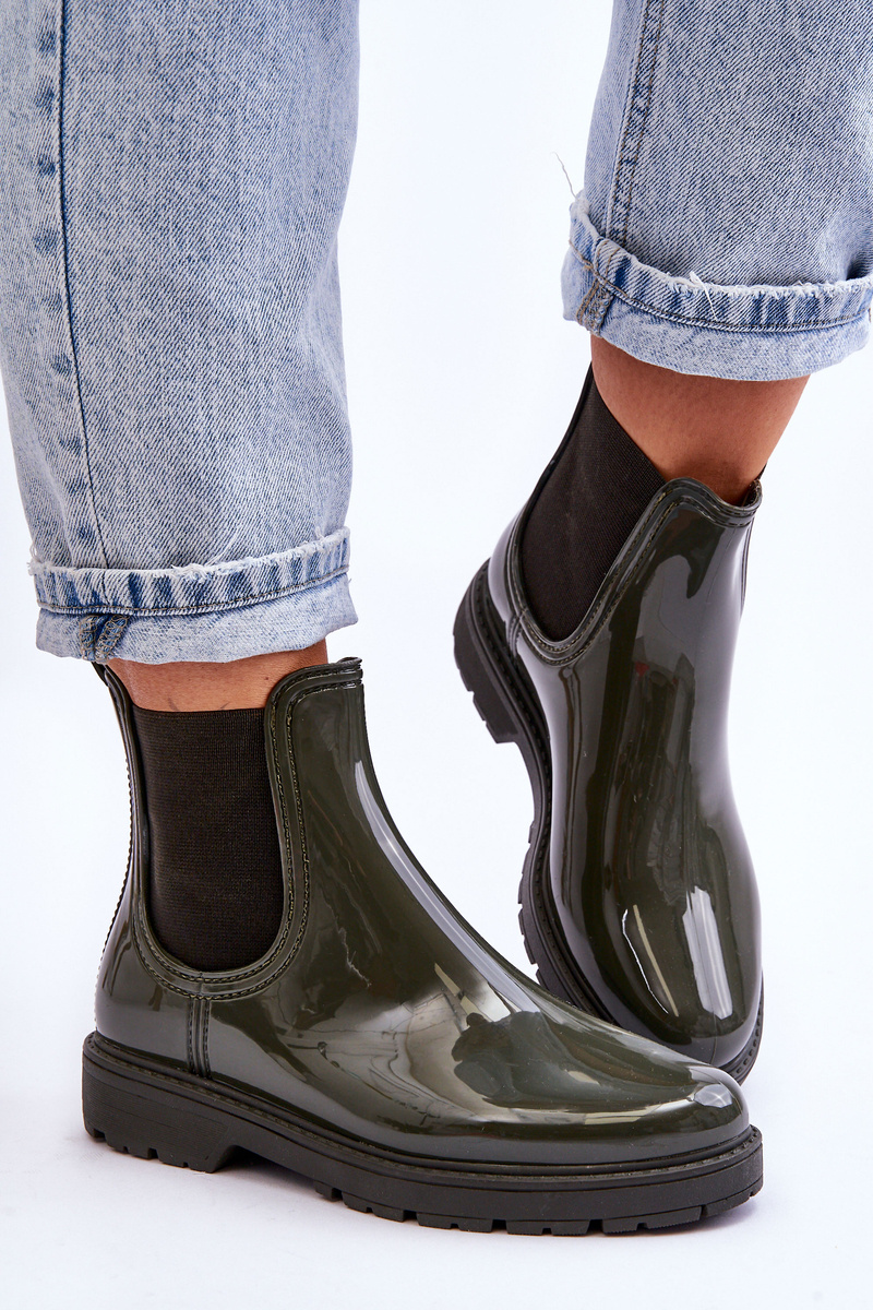 Women's Slip On Galoshes Chelsea Boots Dark Green Larone