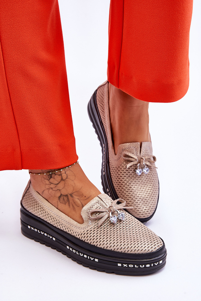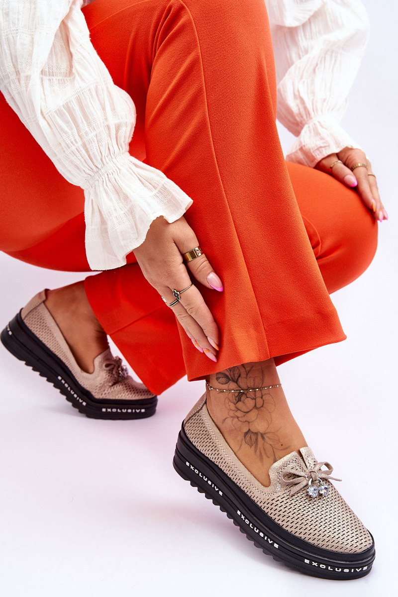 Women's Slip-on Leather Sneakers Glittering Golden Raven