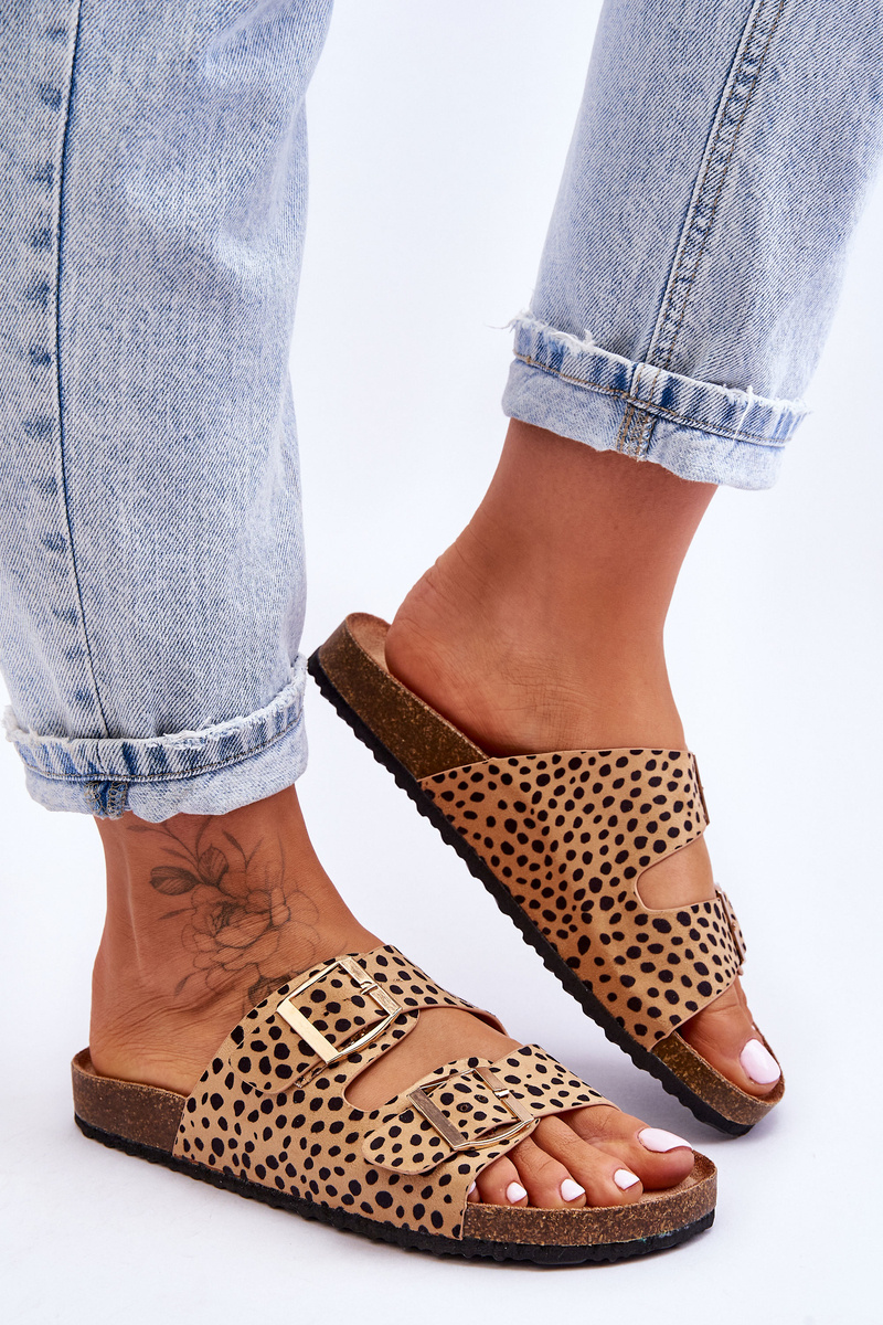 Women's Slip-On Slippers Leopard Beige and Black Destino