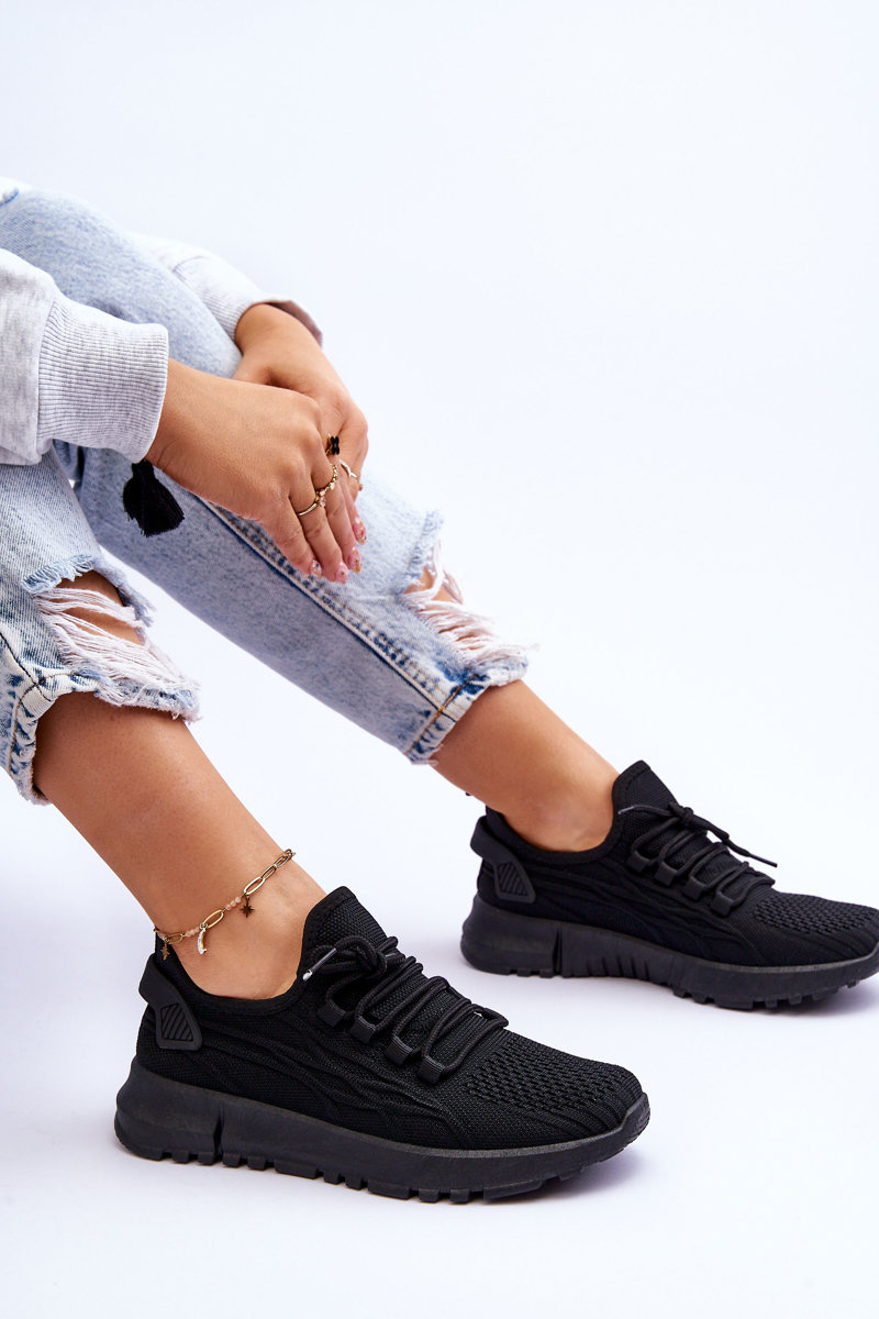 Classic women's sock shoes made of textile material. This model is slip-on and additionally has lacing, which will allow the footwear to be properly adjusted to the width of the leg. The shoes were mounted on a plastic platform. The model is very comfortable to use, thanks to the soft, material insert that can be removed. When choosing a size, please refer to the size chart.