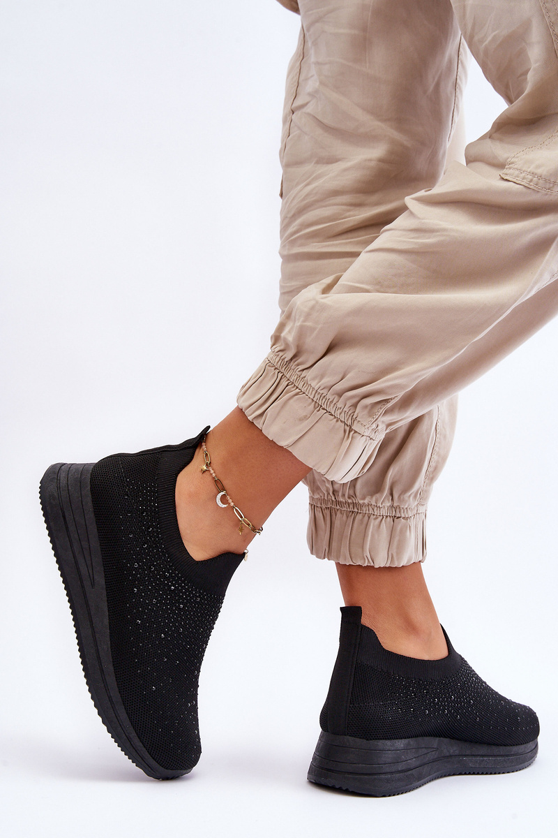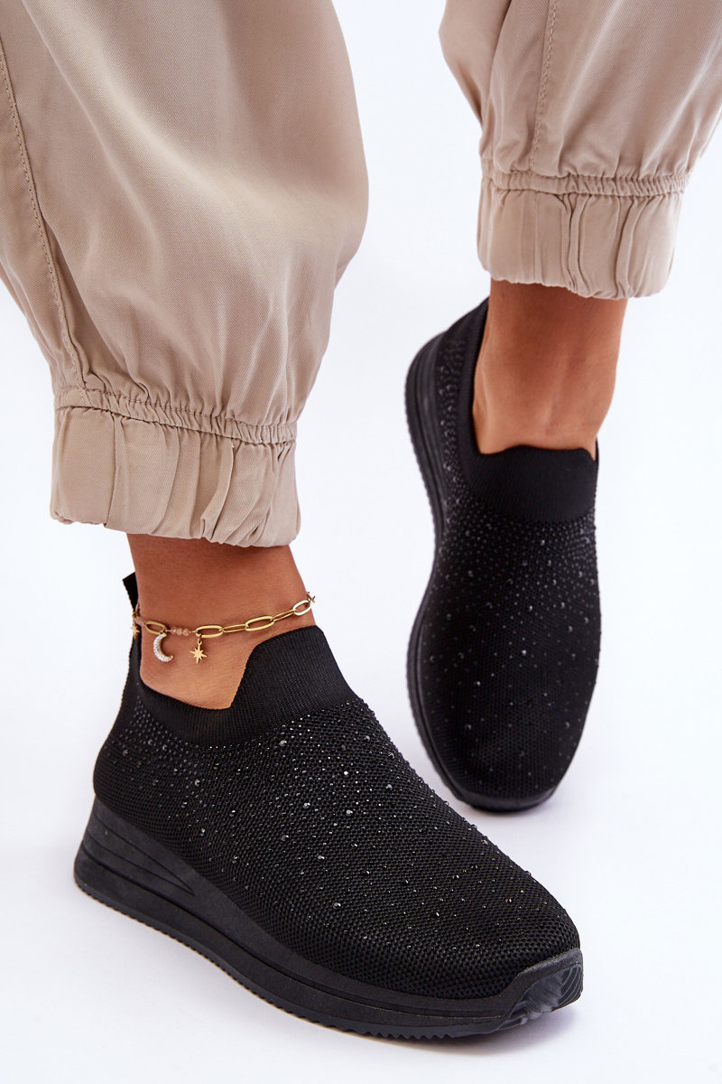 Women's Slip-On Trainers With Rhinestones Black Gianni