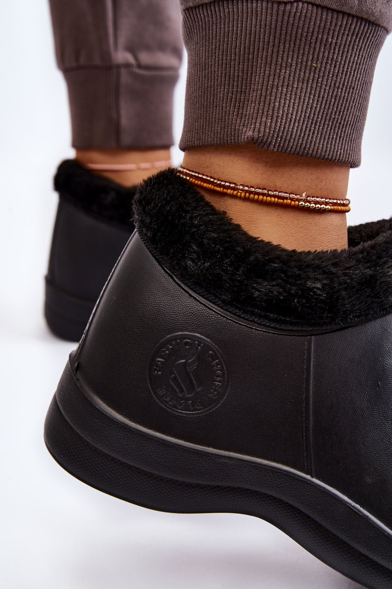 Classic, women's wellies are made of EVA foam. This model has been insulated with eco fur. Shoes set on a flat heel and a delicate platform. On the side there is a decorative, embossed logo. Perfect for walking on wet ground or for work in the garden. When choosing a size, please refer to the size chart.