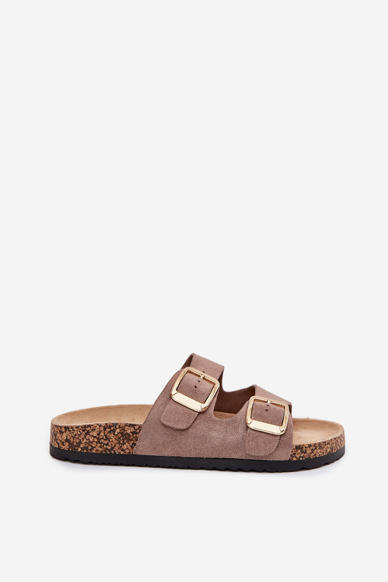 Women's Slippers Made Of Eco Suede Golden Buckles Dark Beige Vorella