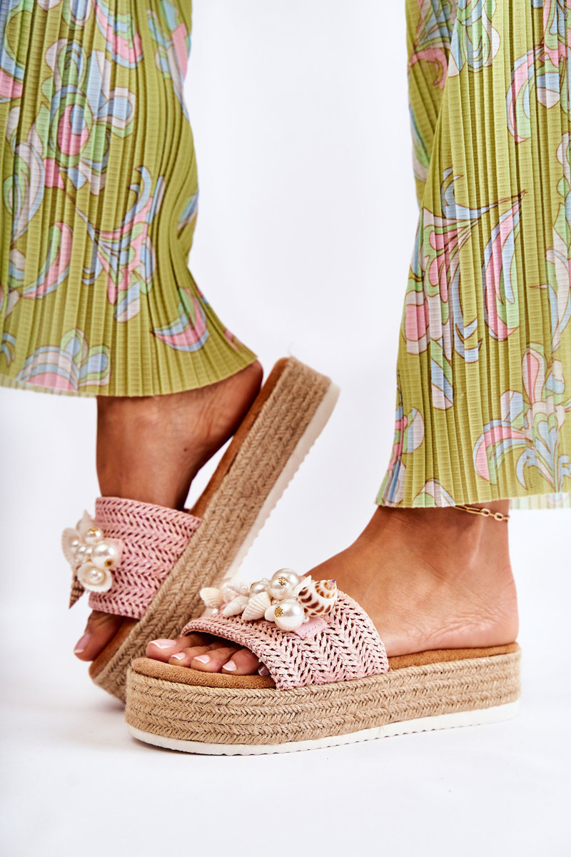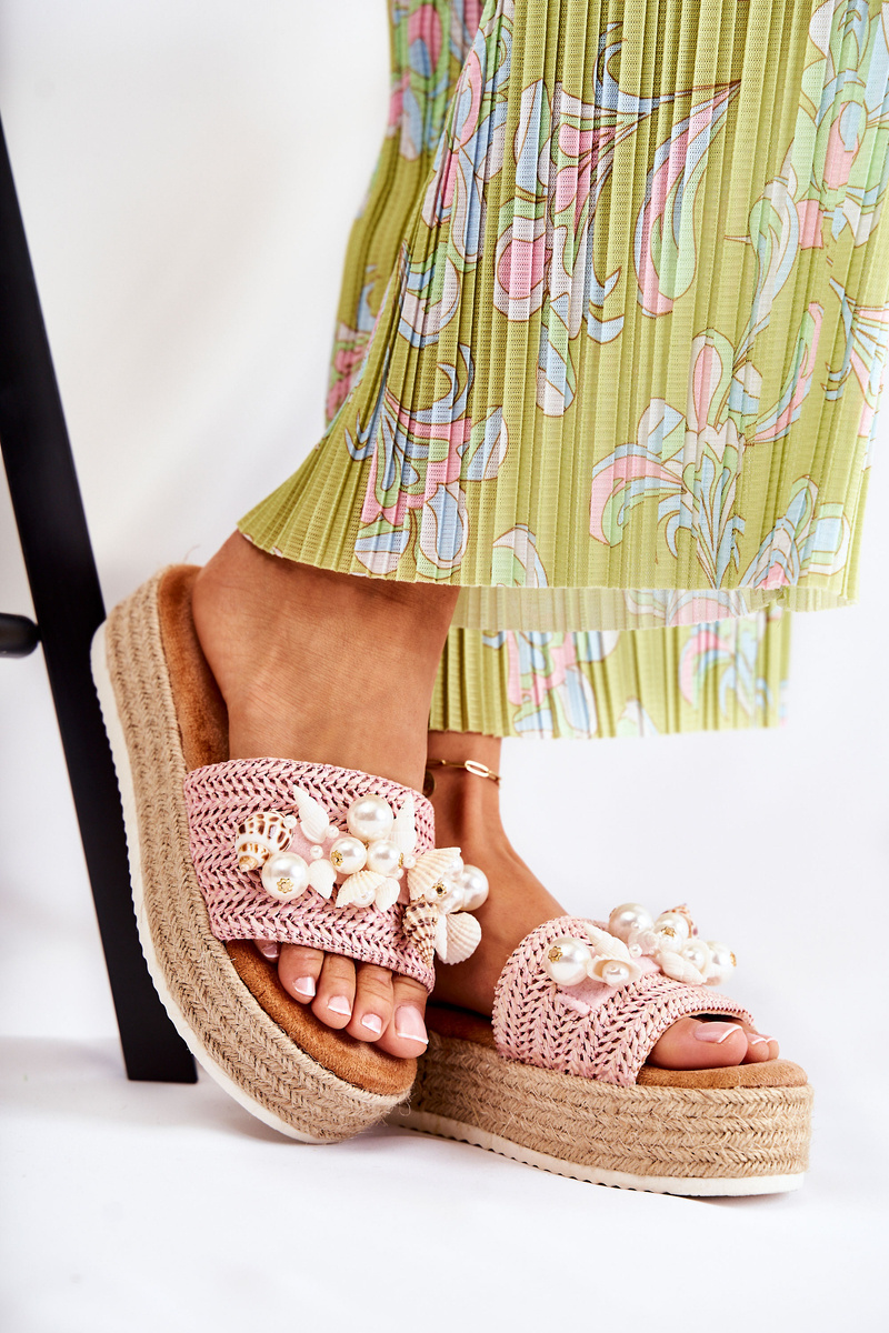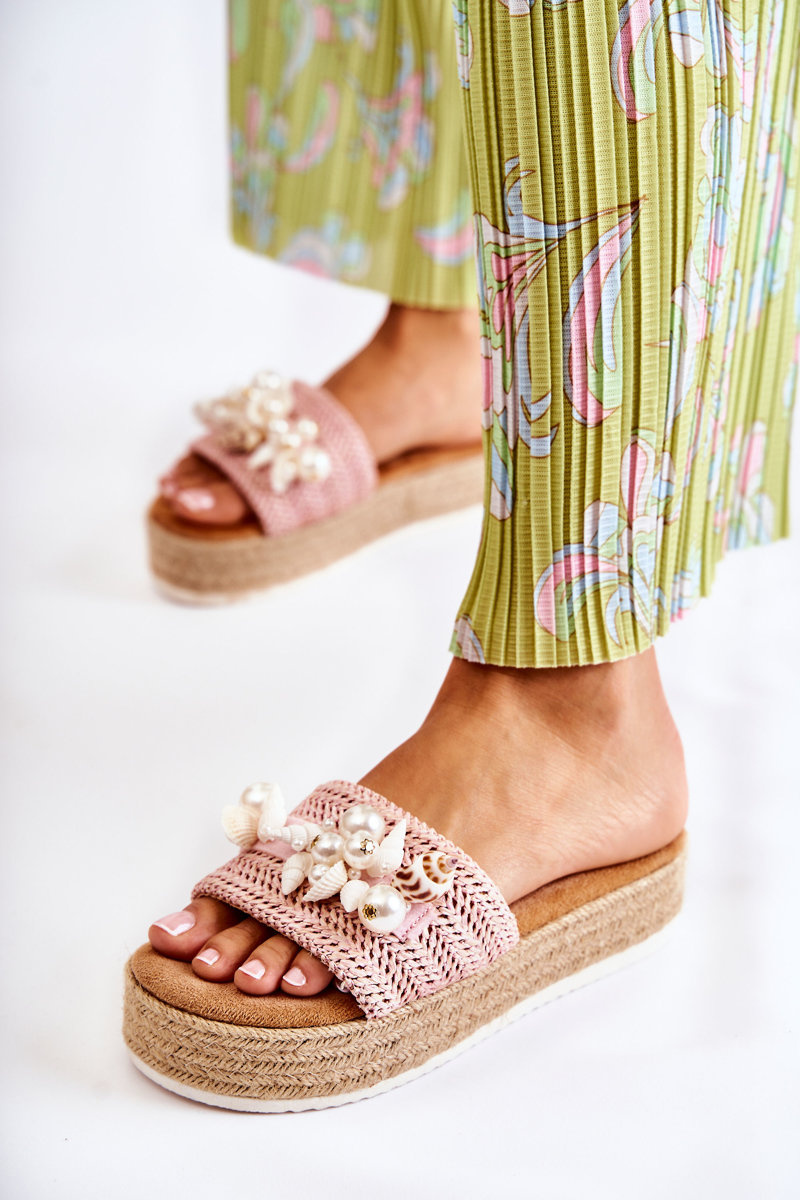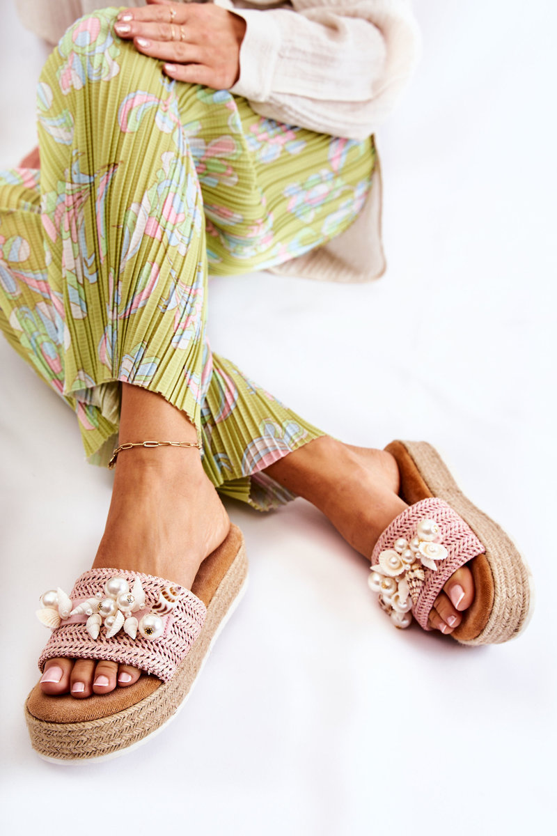 Women's Slippers On The Platform With Shells Pink Tolia