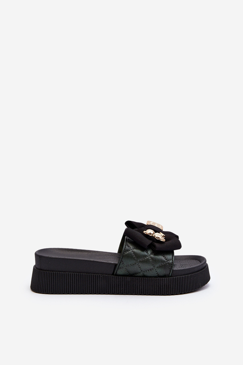 Women's Slippers With Bow and Teddy Bear Black Katterina