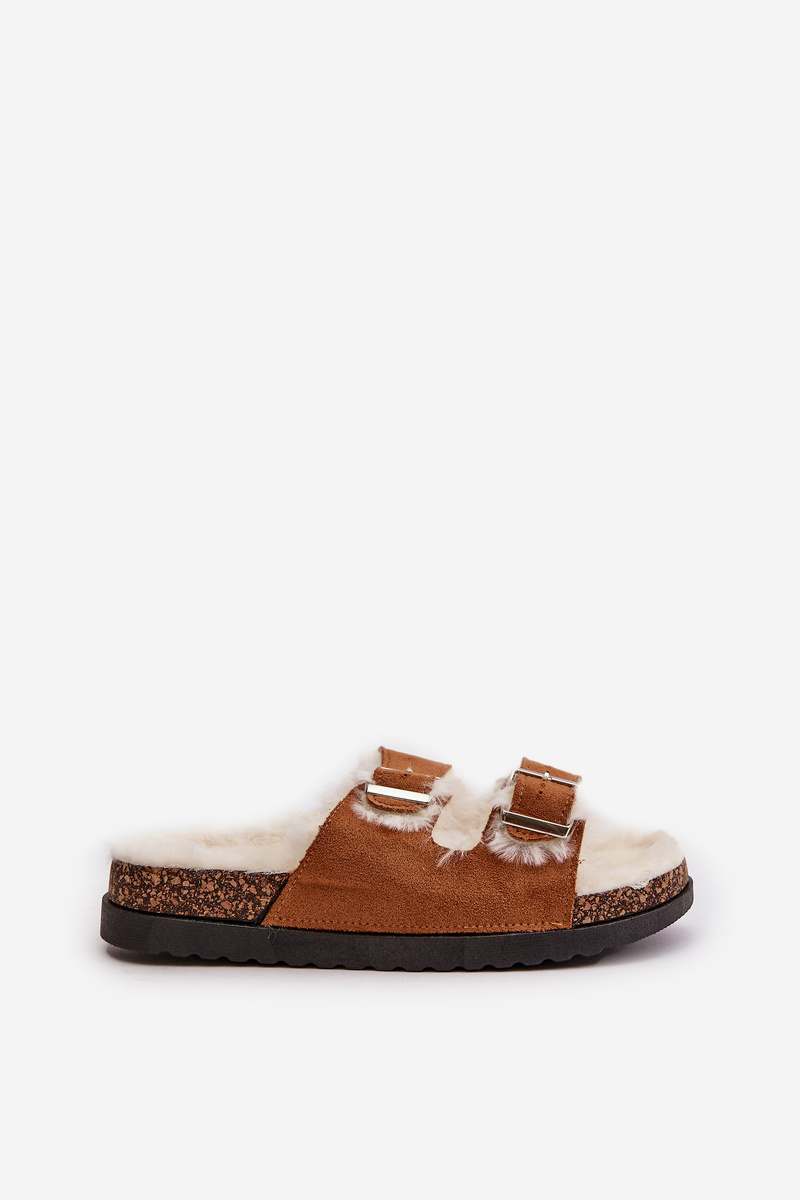 Women's Slippers With Buckles And Fur Camel Ezilena