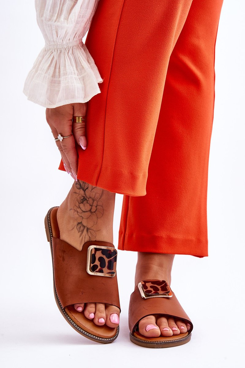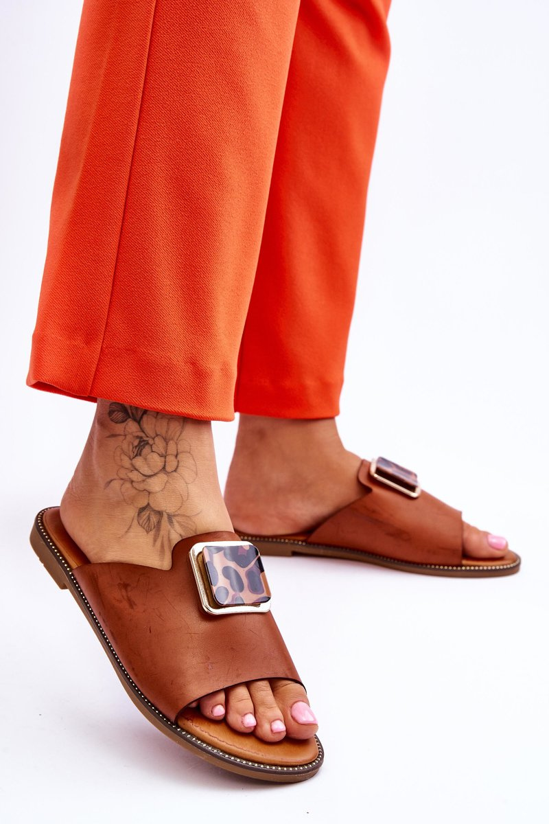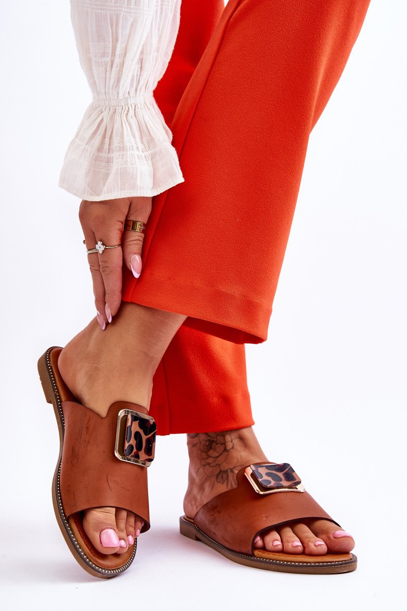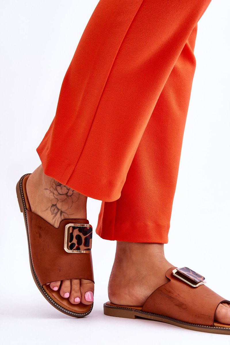 Women's slippers with a decorative element on the front. Made of plastic on the top, while the insole is made of eco leather. The sole is made of rubber material, which is additionally non-slip. The nose is open, rounded. There are decorative studs around the sole. Slippers set on a flat heel. A model that will be perfect for hot days! Classic flip-flops are perfect for work, shopping or meeting friends. Attention! The flip flops have delicate markings! When choosing a size, please use the size chart.