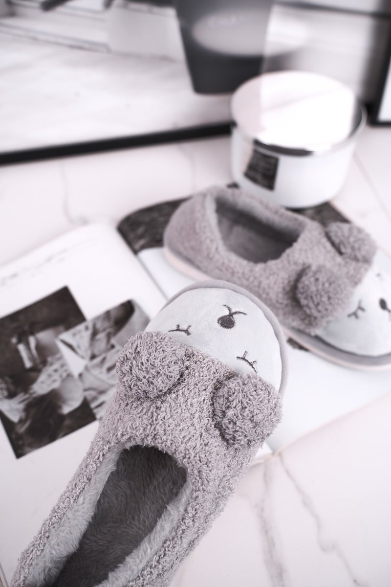 Women's Slippers With Fur Teddy Bear Grey Sweetie