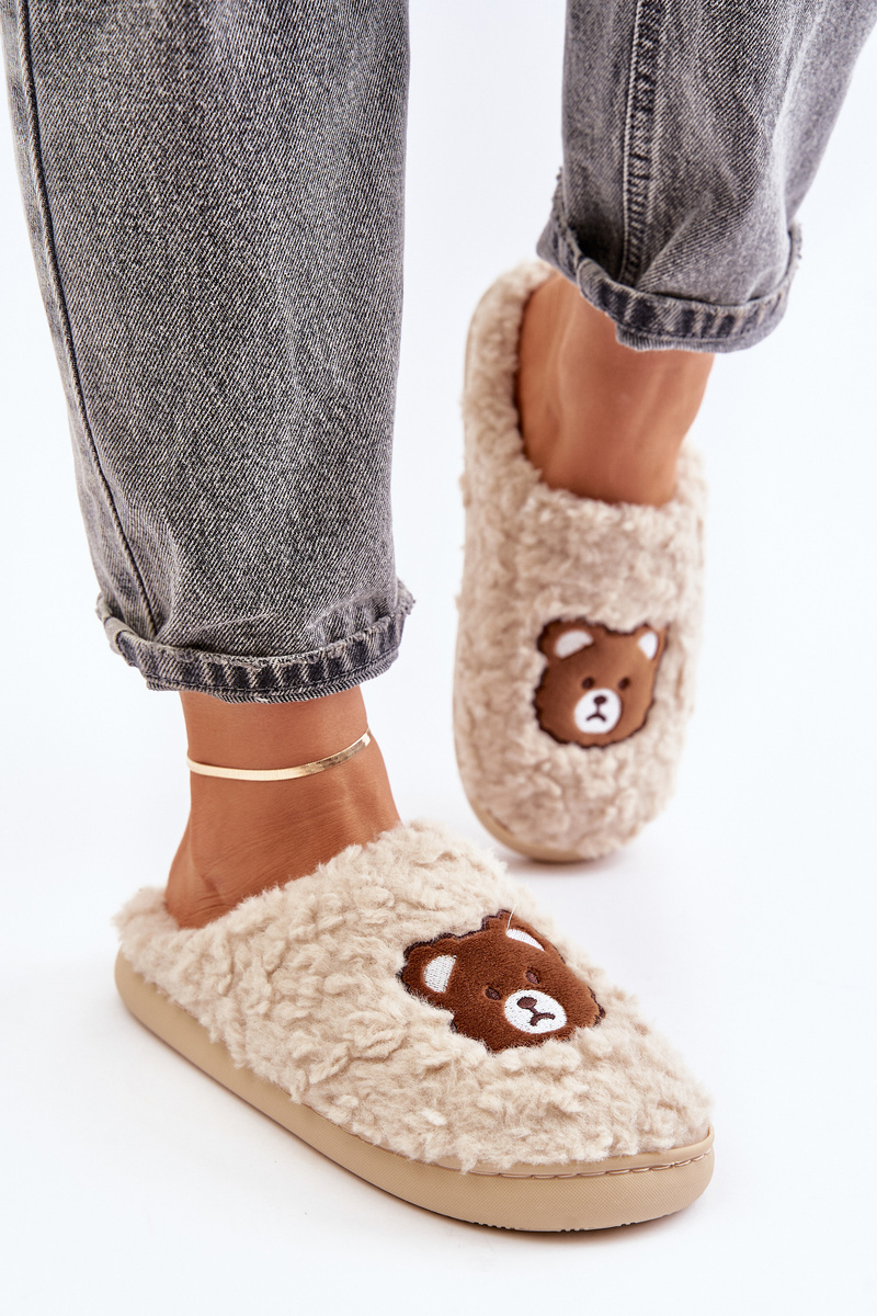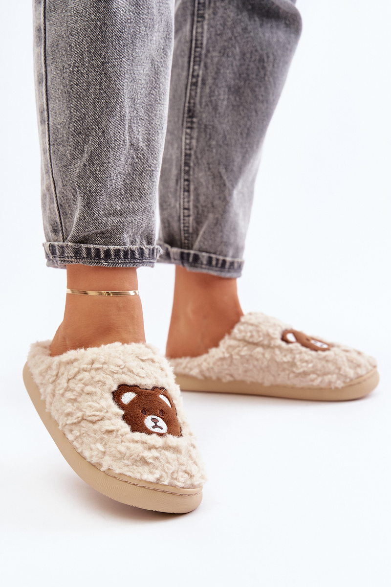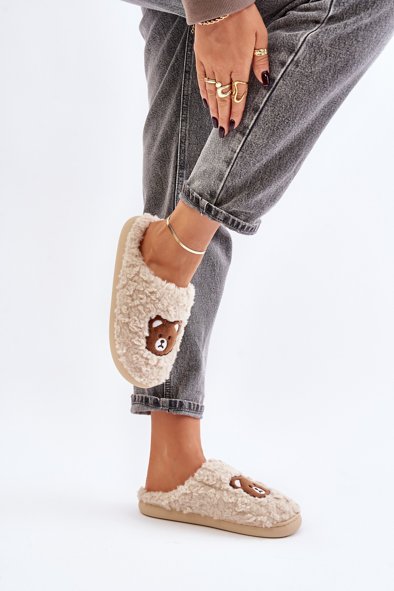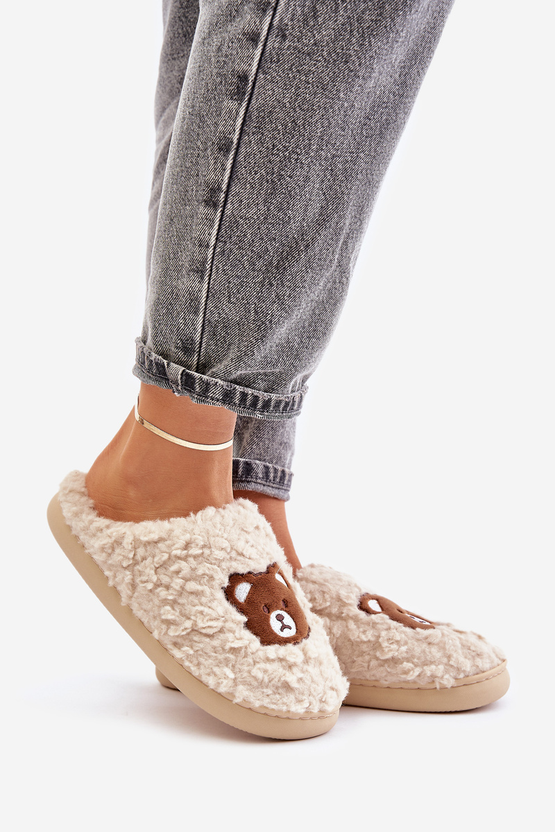 Women's Slippers With Fur Type Lamb And Teddy Bear Beige Temiena