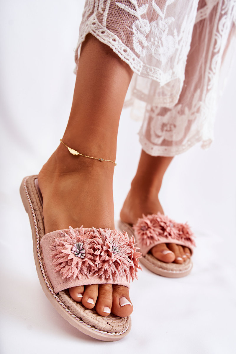Women's Slippers With Material Flowers Pink Susana