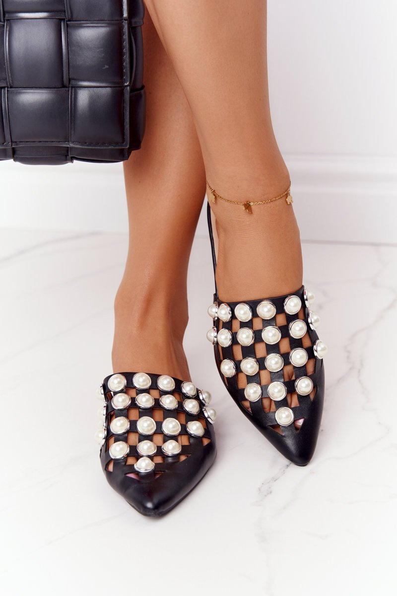 Women's Slippers With Pearls Black Ripple