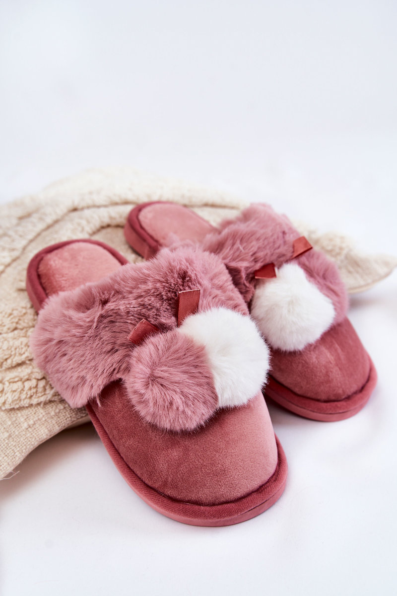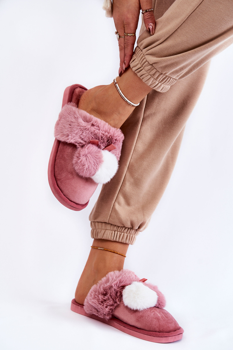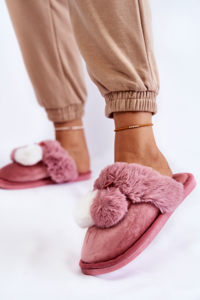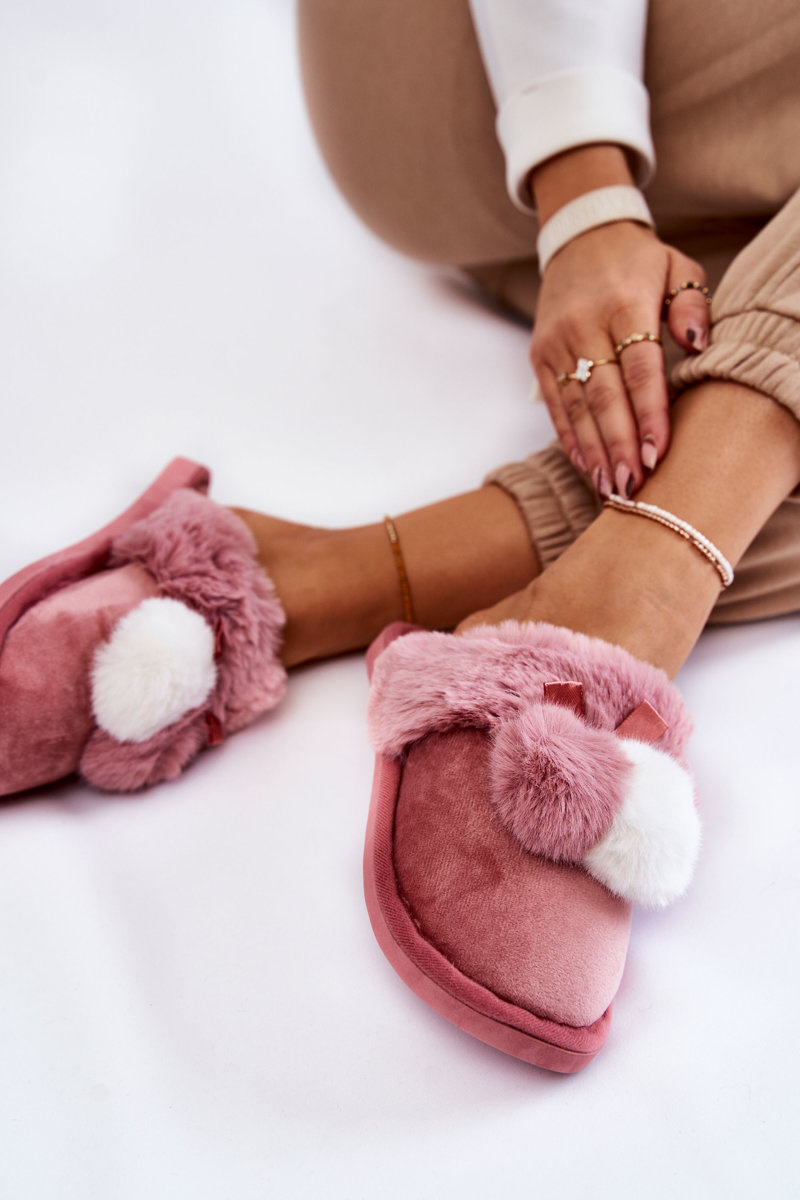 Women's Slippers With Pompoms And Fur Pink Sahira