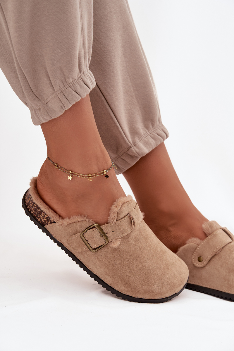 Women's slippers with warm lining with buckle Beige Sylisse