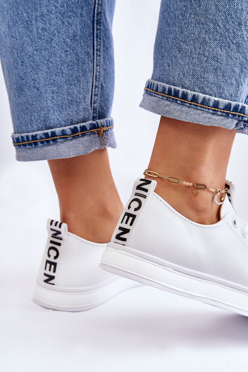Classic, low sneakers is a timeless model that will never go out of fashion. They match everything, both jeans and flimsy dresses. Shoes perfect for everyday trips to the city. A fashionable finish is the decoration on the heel and tongue in the form of the NICE inscription. Check out our entire range of eco-leather sneakers. When choosing a size, please suggest a size chart.