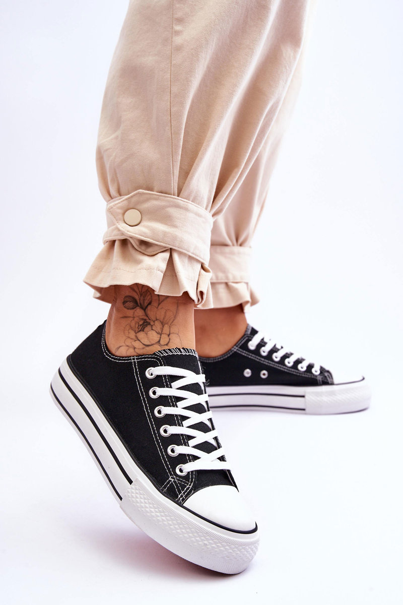 Women's classic sneakers on a massive platform match many styles. They were made of fabric. They have a fabric insert. The rubber platform with a non-slip sole will ensure stability at every step. In addition, the heel counter in these shoes is slightly stiffened. These shoes are perfect for both trousers and skirts.When choosing a size, please refer to the size chart.