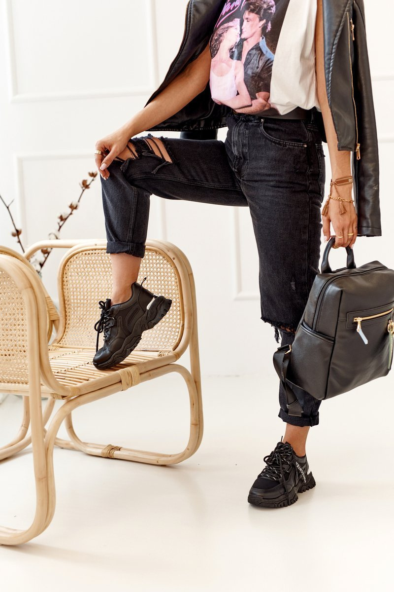 Women's sneakers with a chunky sole. The shoes are made entirely of eco leather. A soft material insert will ensure comfort, and a few centimeters sole will lift your figure. A fashionable cut will complement many of your outfits. Be sure to check out our entire collection of sports shoes. When choosing a size, please use the size chart.
