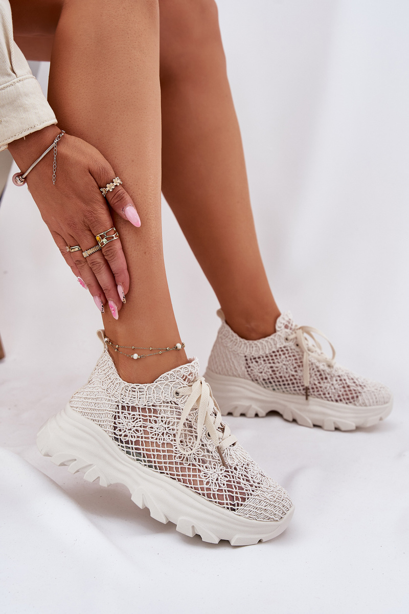 Women's Sneakers With Crocheted Upper Beige Jelhiris
