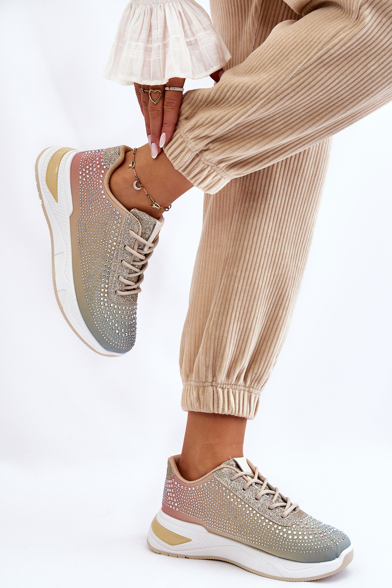 Classic, women's sports shoes are made of textile material. In addition, they have decorations in the form of rhinestones imitating zircons. They were placed on the platform. This model has classic lacing. The soft insert made of material will ensure comfort during use. You absolutely should have them! When choosing a size, please refer to the size chart.