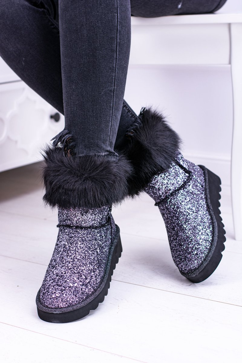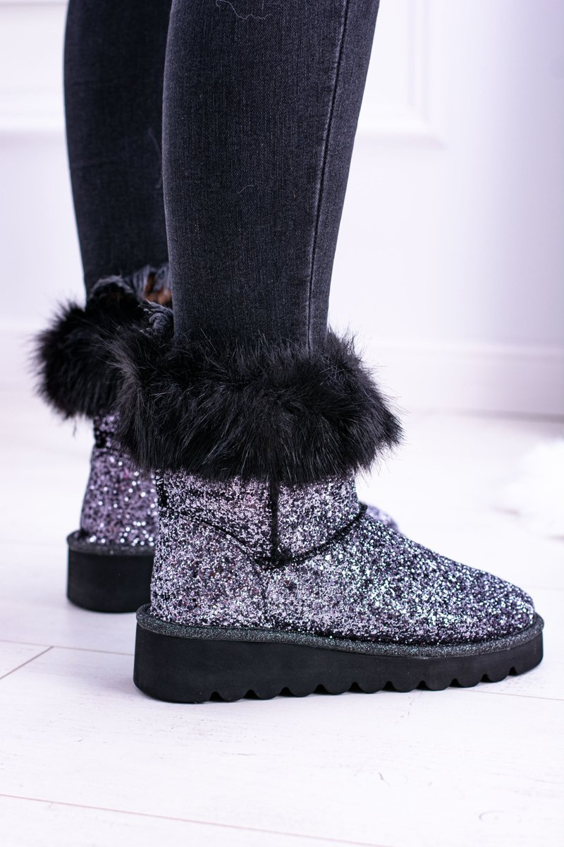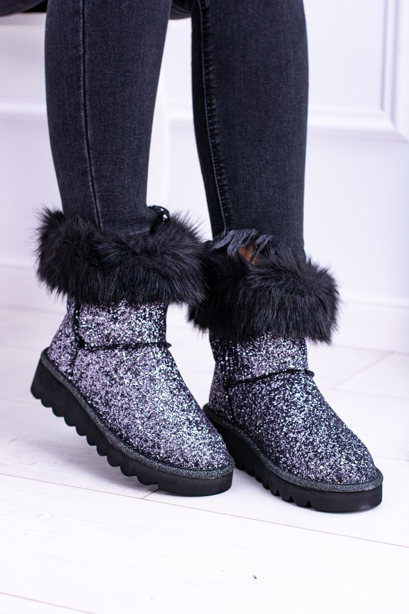 Women's Snow Boots High With Fur and Glitter Fourrure