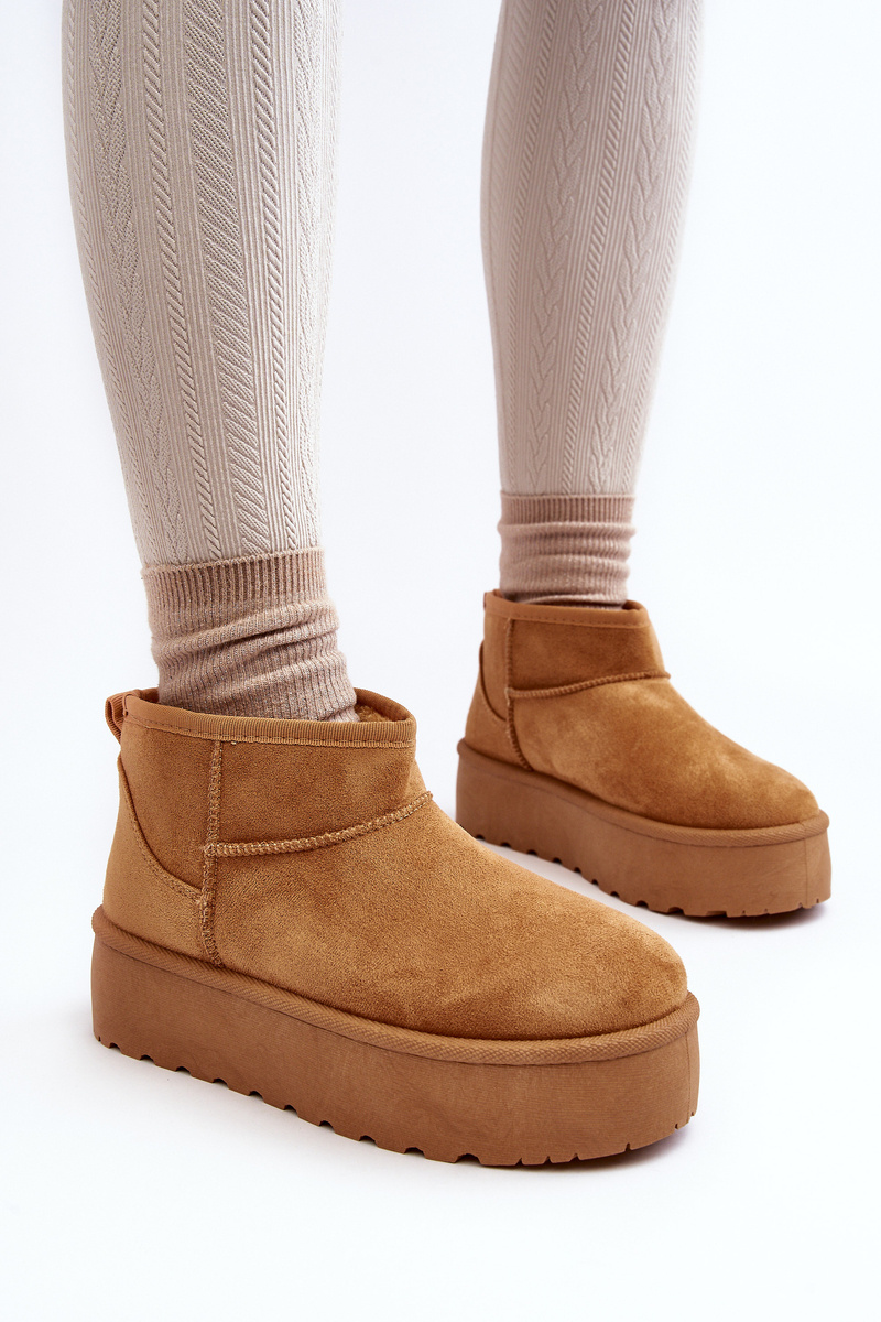 Women's snow boots set on a thick platform that will perfectly insulate from the cold ground. Made of eco suede. Inside insulated with fur. Ankle boot. This fashionable model will match many autumn-winter outfits! When choosing a size, please refer to the size chart.