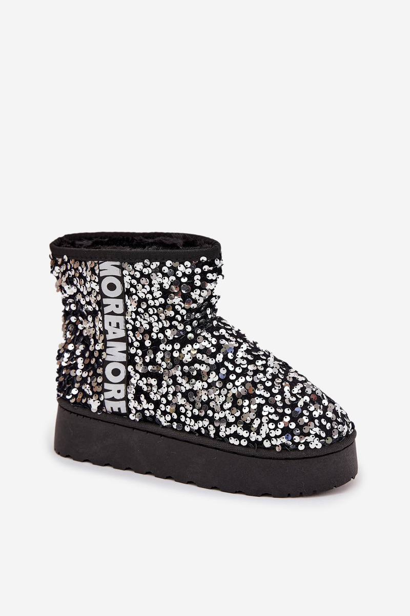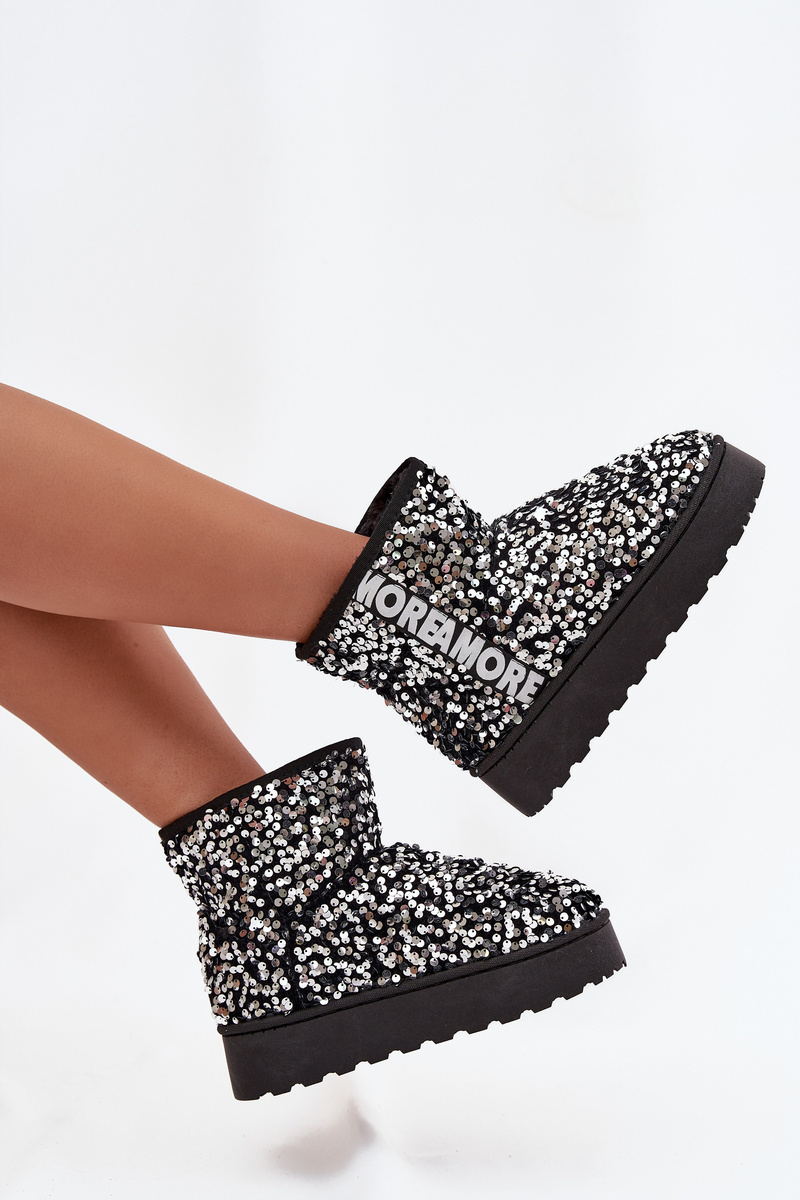 Women's Snow Boots on Platform Decorated with Sequins Black Silver Silmo
