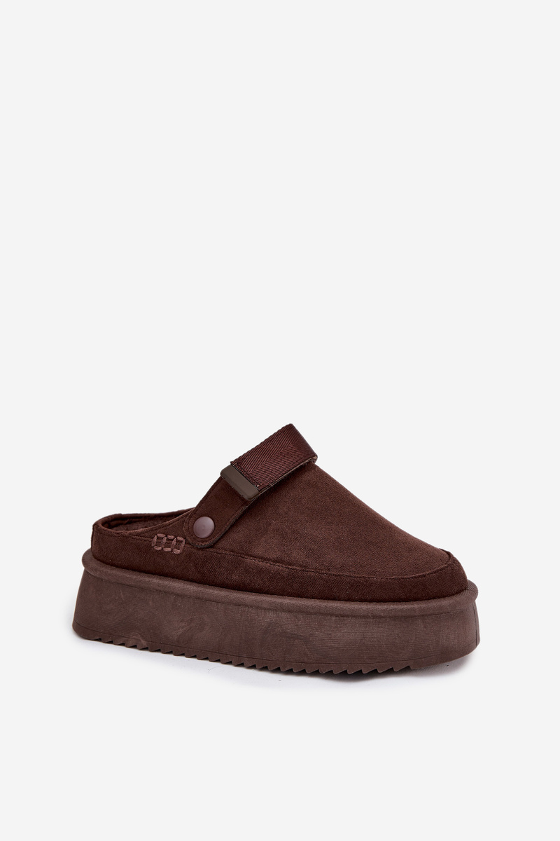 Warm and comfortable women's snow boots made of soft eco suede are a reliable choice for winter days. Positioned on a chunky platform, they effectively insulate the feet from cold ground, providing comfort even during long walks. The interior is lined with soft fur that envelops the foot with pleasant warmth and protects against frost. The model features a practical, movable Velcro strap – you can wear it both at the front and at the back of the shoe. Perfect footwear for everyday wear. When choosing a size, please refer to the size chart.
