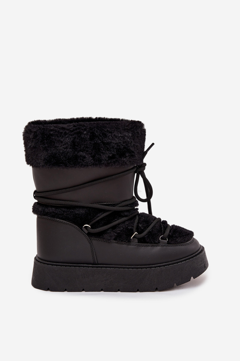 Women's Snow Boots With Fur And Lacing On Platform Black Marinna