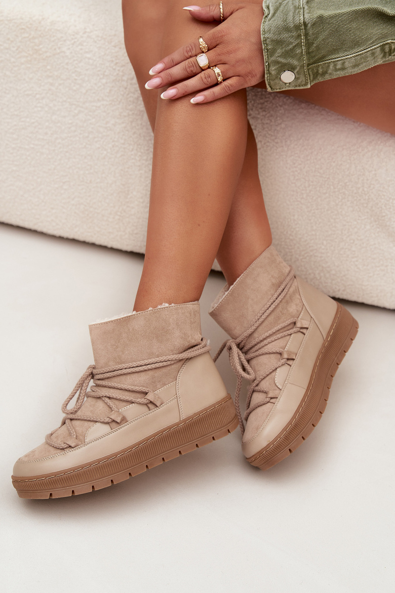 Women's snow boots made from a combination of eco-leather and suede are a practical and stylish option for winter days. Set on a platform made of rubber material, they effectively insulate from cold surfaces, ensuring comfort during wear. The insulated interior guarantees warmth even on frosty days, while also increasing comfort. This versatile footwear is perfect for everyday winter outfits. When choosing a size, please refer to the size chart. When choosing a size, please refer to the size chart.