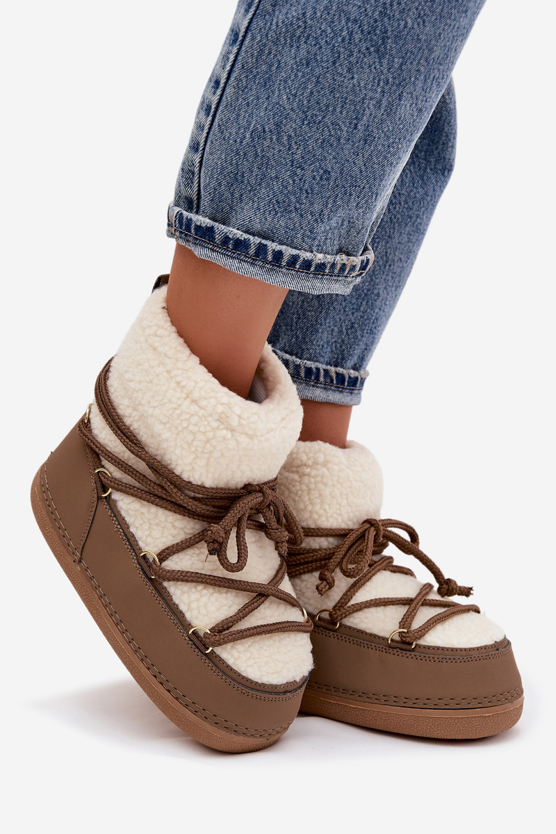 Women's Snow Boots With Sheepskin Lining Lace-up Dark Beige Belira