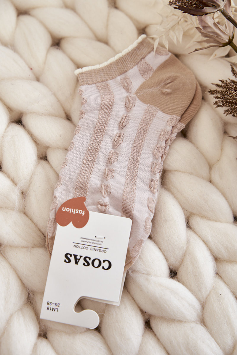 Women's socks are mainly made of bamboo fiber. Model with fashionable patterns. The socks are thinner, airy. The ankle ribbing is finished with a delicate frill. Socks will look great with oxfords or loafers. This model should be in your wardrobe!