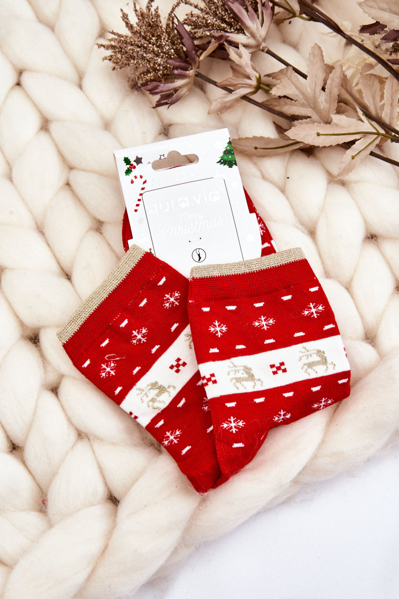 Women's Socks With Christmas Patterns Reindeer And Snowflakes Red